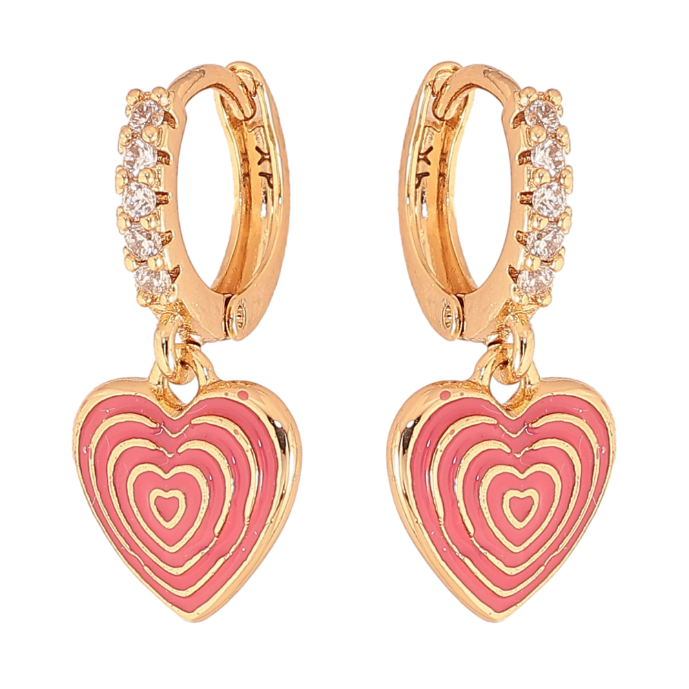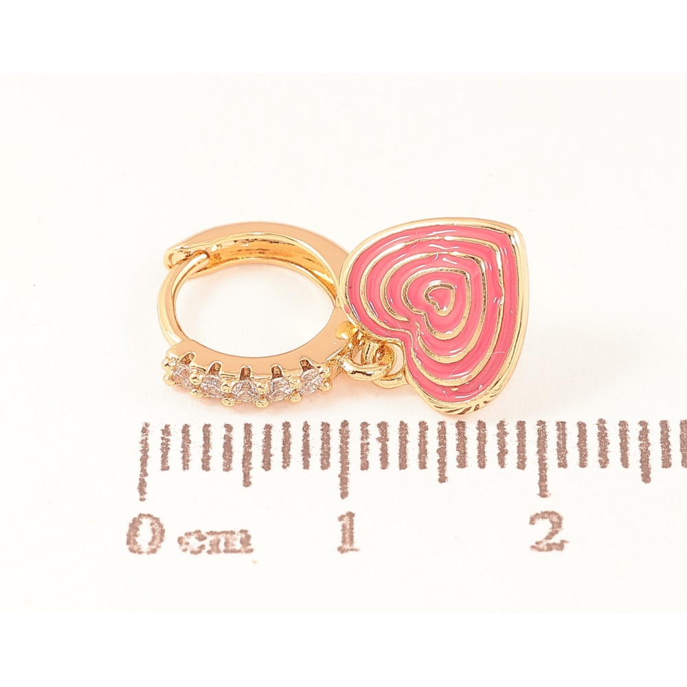 Сережки Xuping колір Позолота 18К підвіски на колечках "Сердечки з візерунком рожевою емаллю"