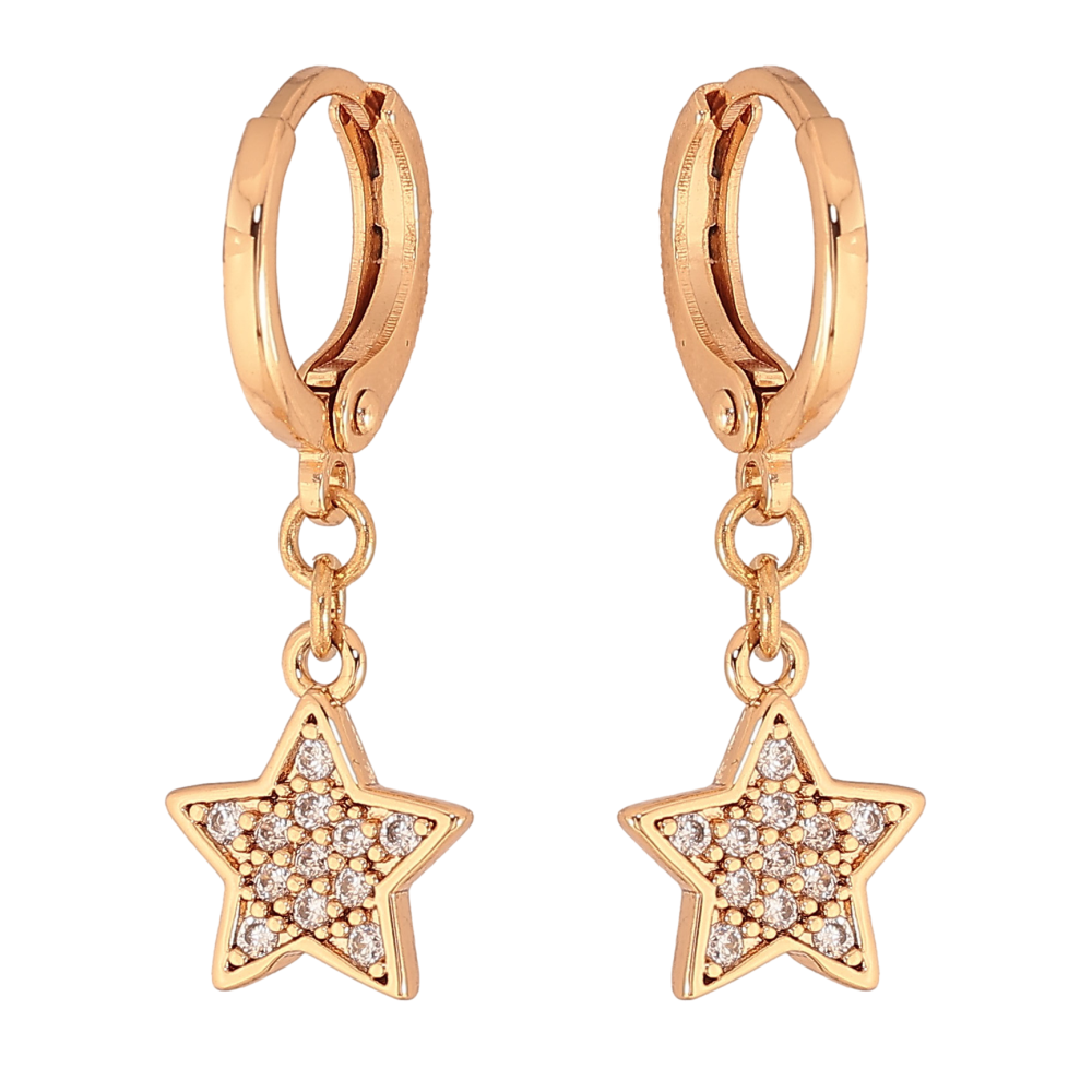 Сережки Xuping колір Позолота 18К підвіски на колечках "Зірки з кристалами"