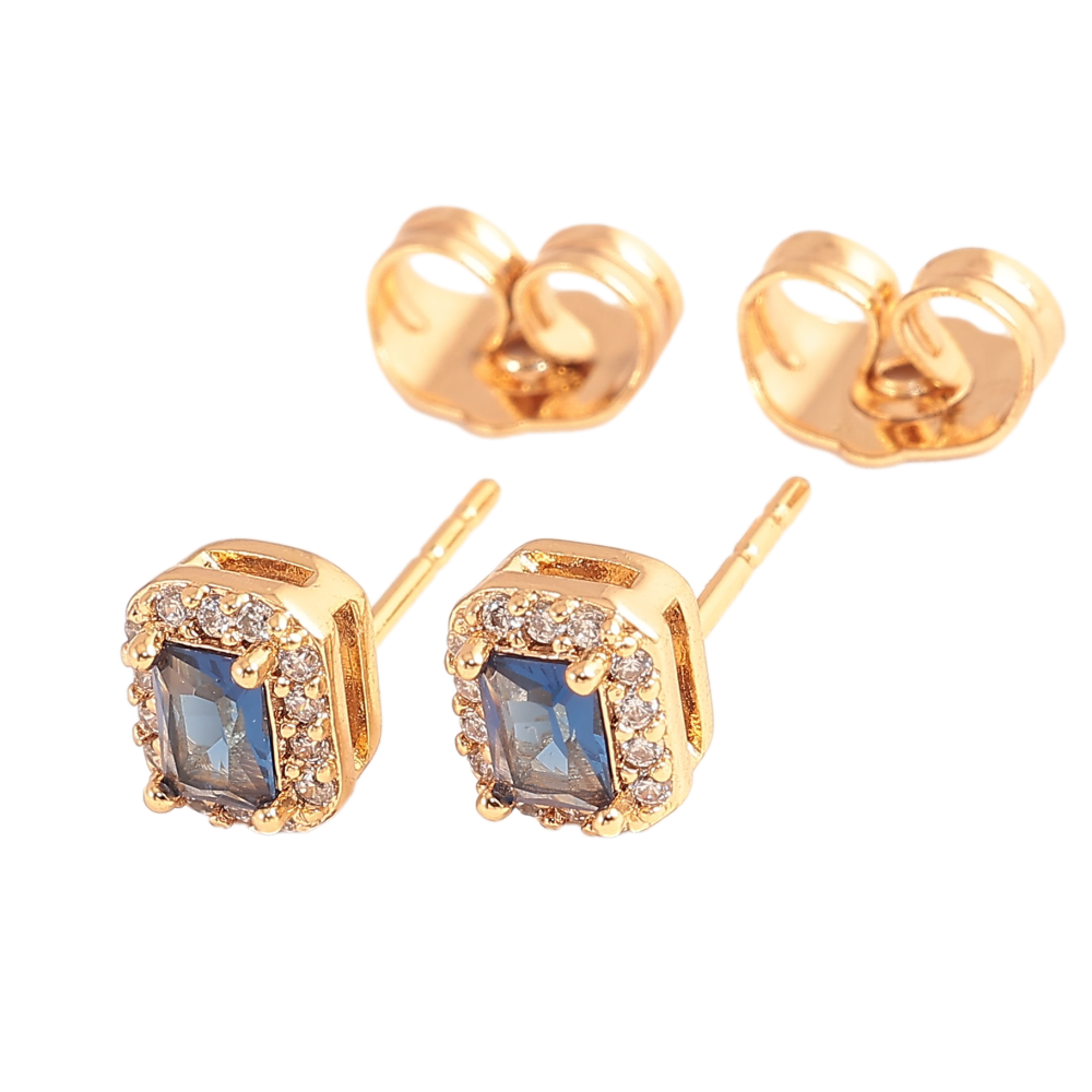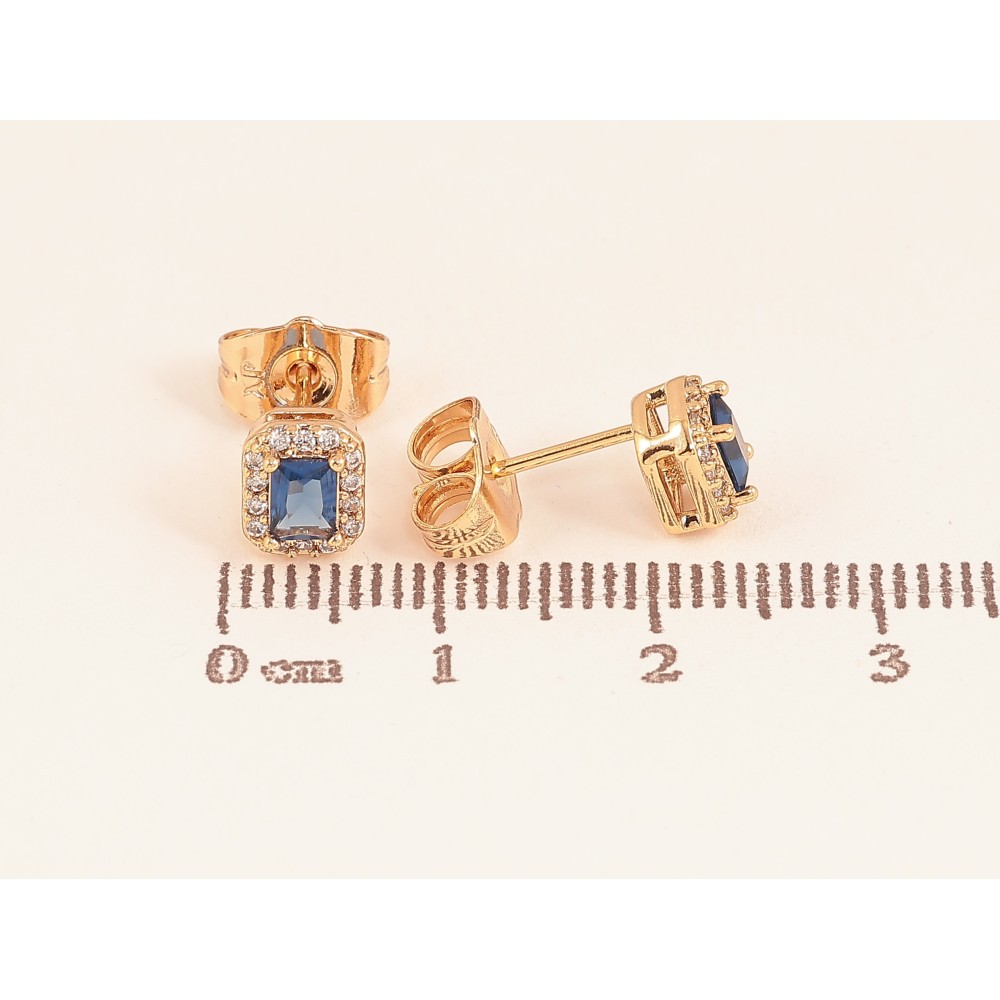 Сережки Xuping колір Позолота 18К пусети "Сині кристали в обрамленні"