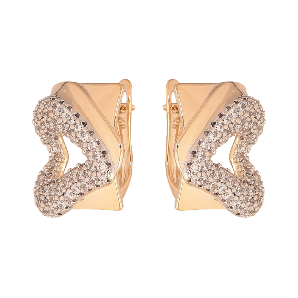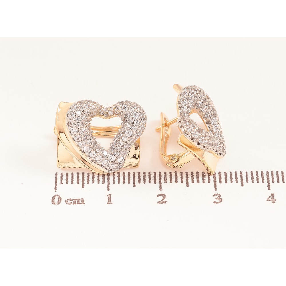 Сережки Xuping колір позолота 18K + родій англійський замок серця з інкрустацією кристалами
