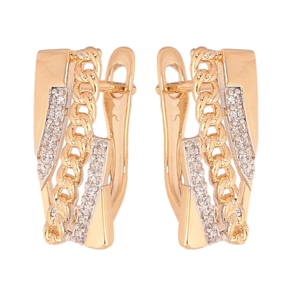 Сережки Xuping колір позолота 18K + родій англійський замок візерунок ланцюжок з кристалами