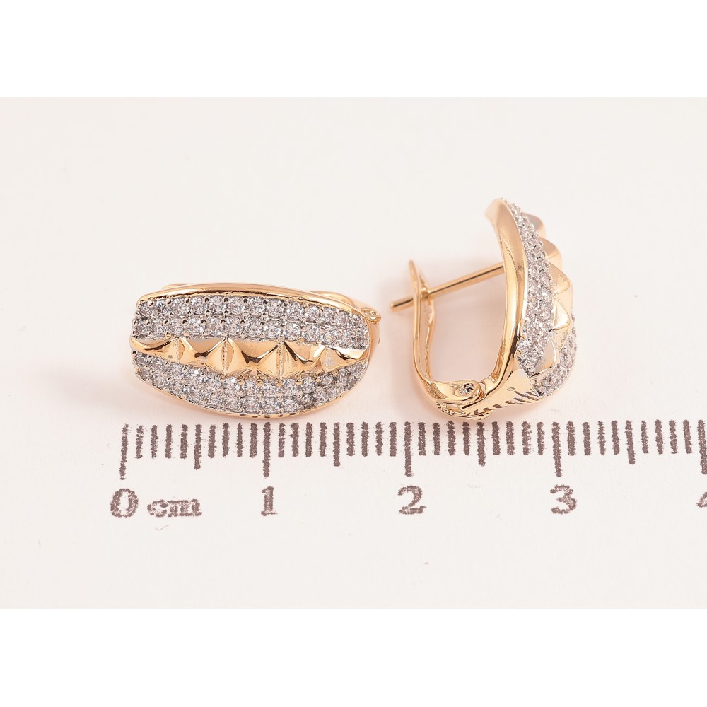 Сережки Xuping колір позолота 18K + родій англійський замок візерунок з інкрустацією кристалами