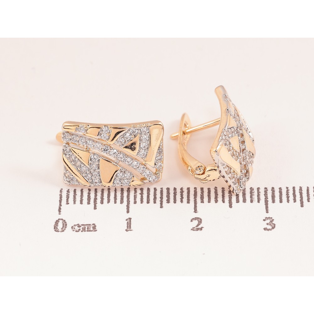 Сережки Xuping колір позолота 18K + родій англійський замок візерунок з кристалами
