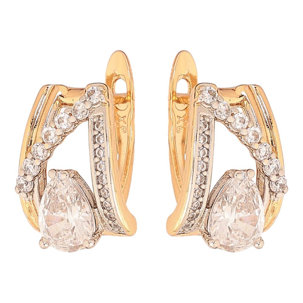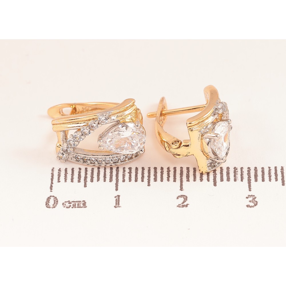 Сережки Xuping колір позолота 18K + родій англійський замок візерунок з кристалами