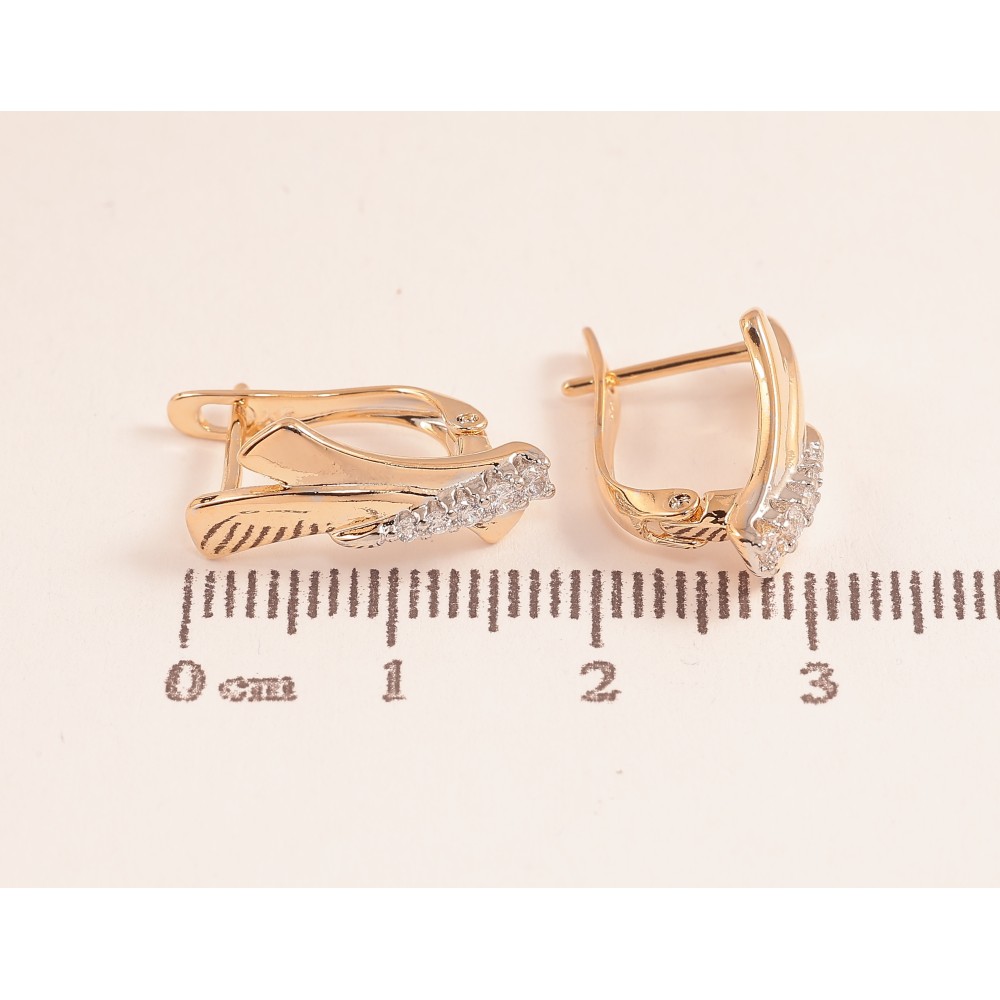 Сережки Xuping колір позолота 18K + родій англійський замок візерунок з кристалами