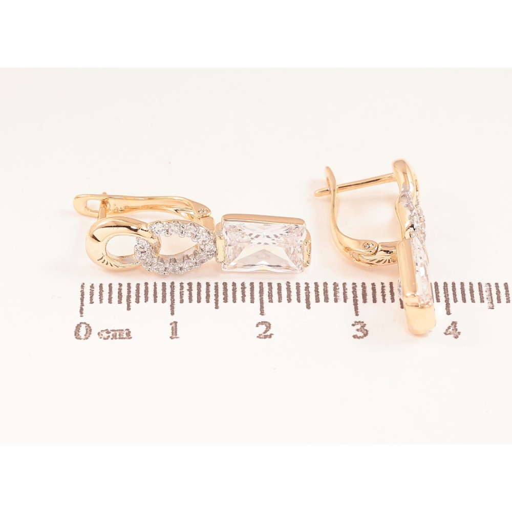 Сережки Xuping колір позолота 18K + родій англійський замок візерунок з кристалами