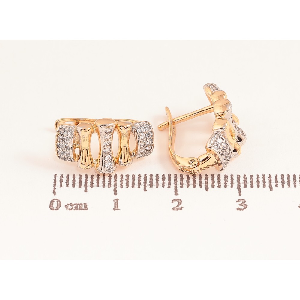 Сережки Xuping колір Позолота 18K + Родій англійський замок "Візерунок з кристалами"