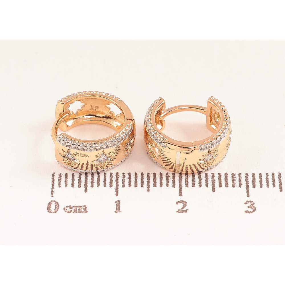 Сережки Xuping колір позолота 18K + родій колечка візерунок з кристалами