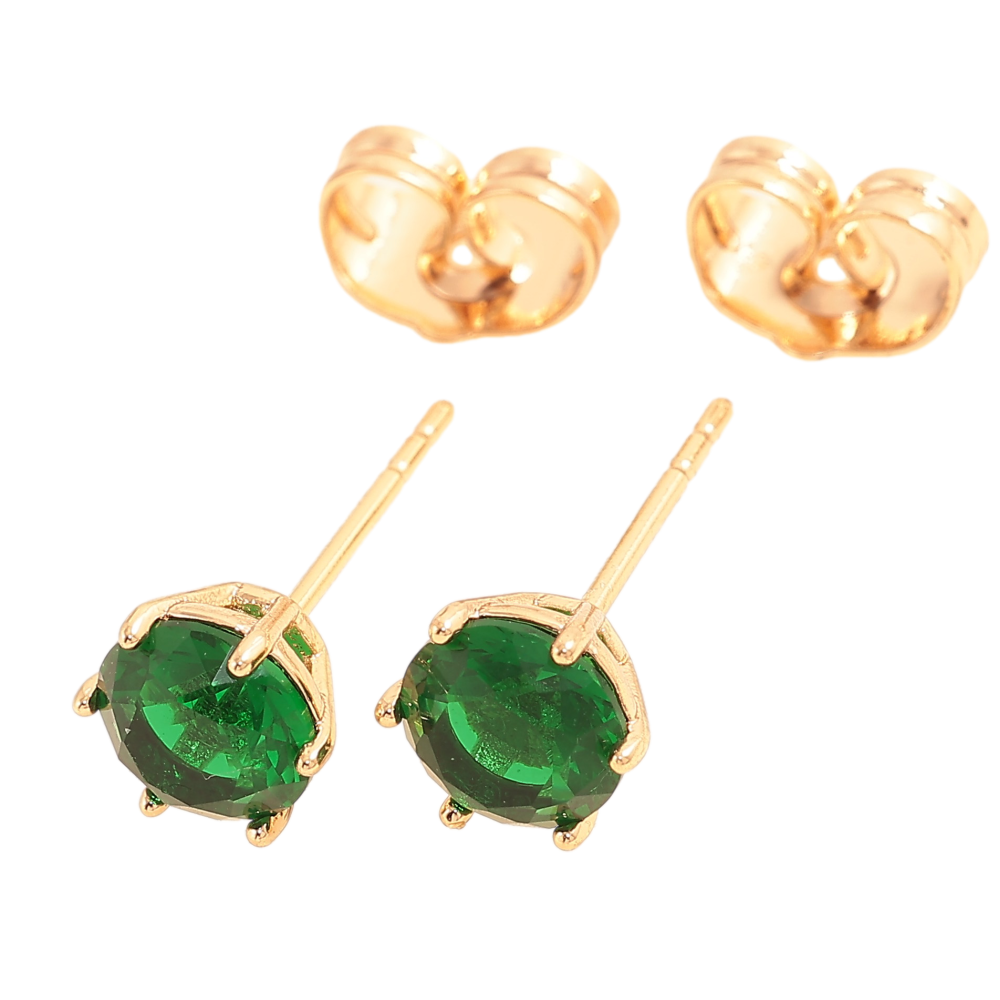 Сережки Xuping колір Позолота 18К пусети "Зелені кристали в 6-ти крапановій оправі" ø 6мм