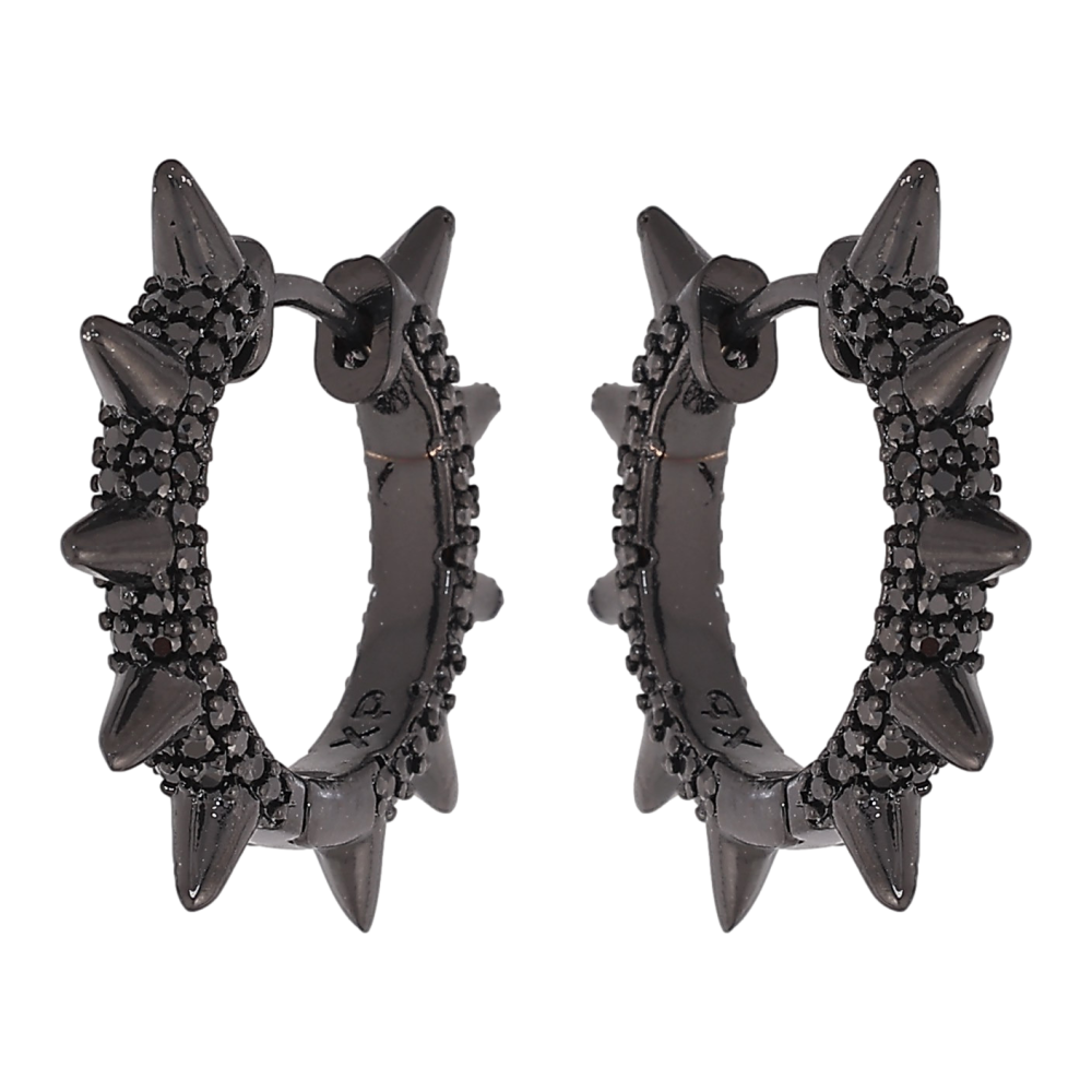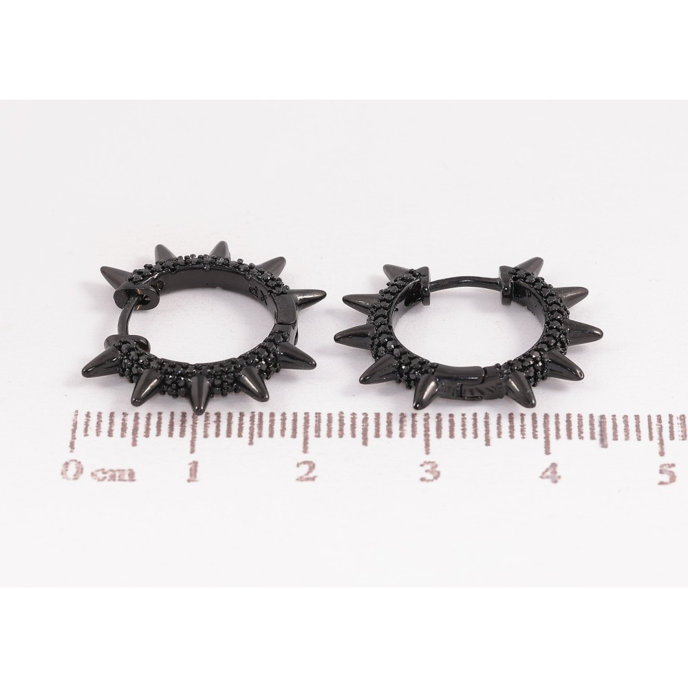 Сережки Xuping колір Позолота Black (чорне золото) колечка "Візерунок з шипами та інкрустацією чорними кристалами"