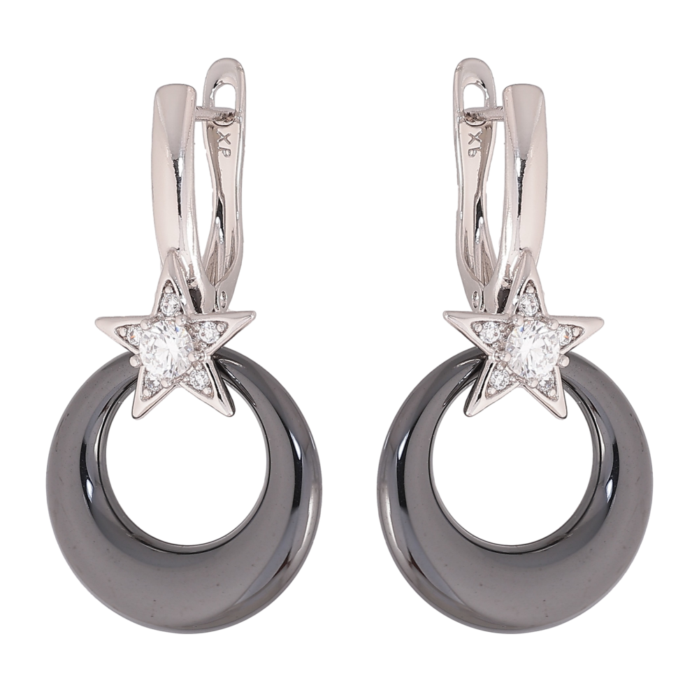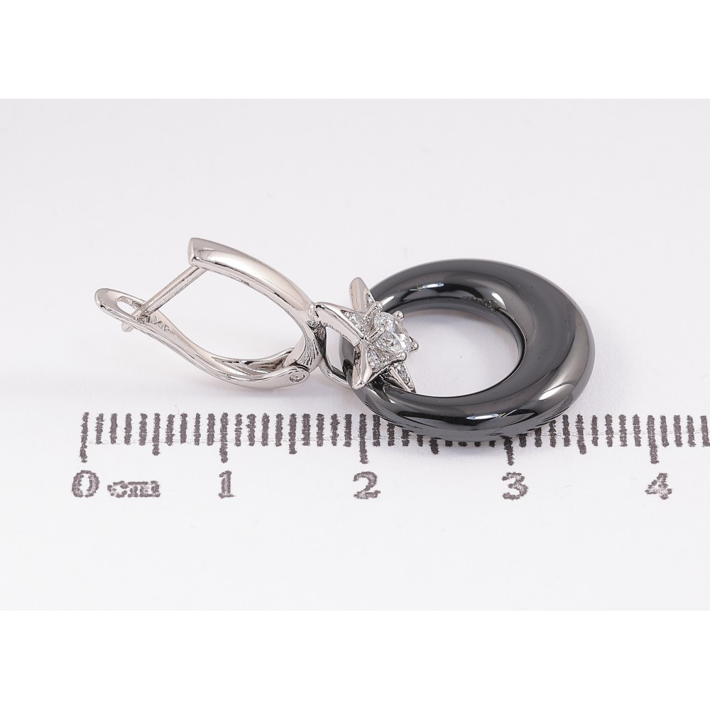 Сережки Xuping колір Родій англійський замок "Кругі підвіски з чорної кераміки"