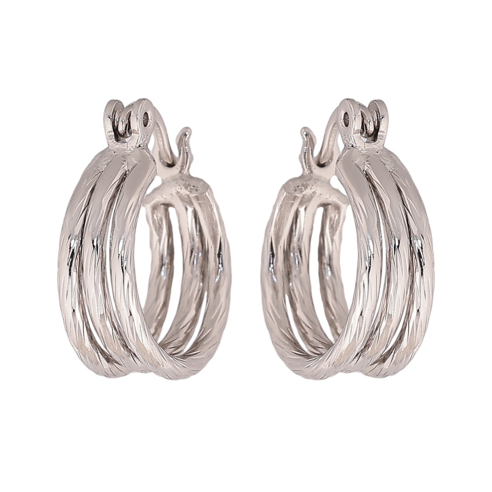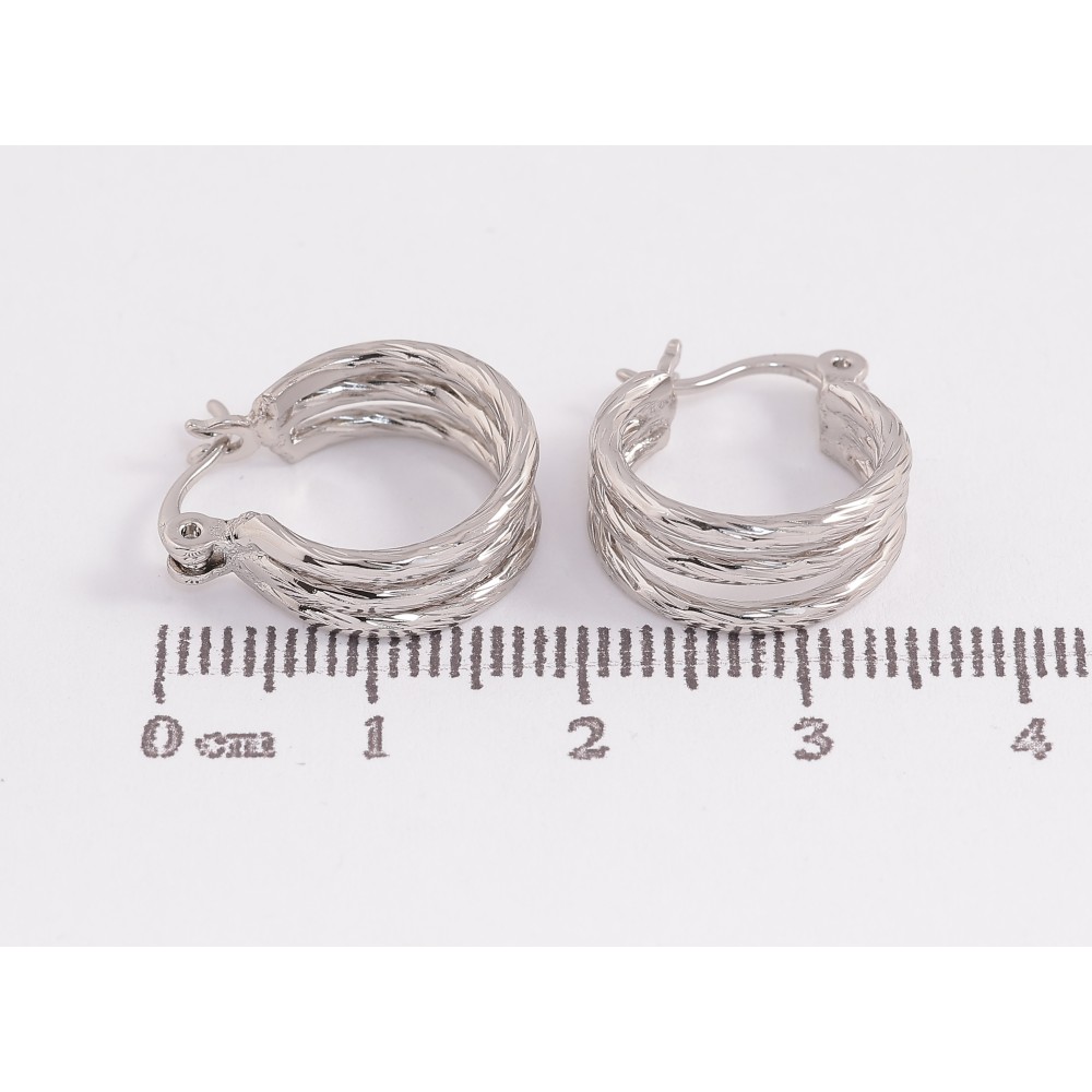Сережки Xuping колір Родій кільця (конго) "Потрійні з візерунком" ø 1.5см