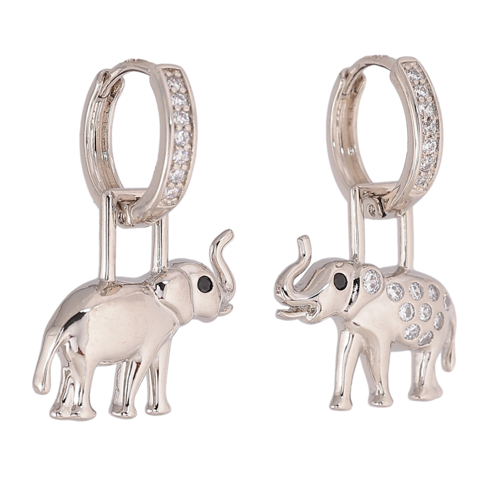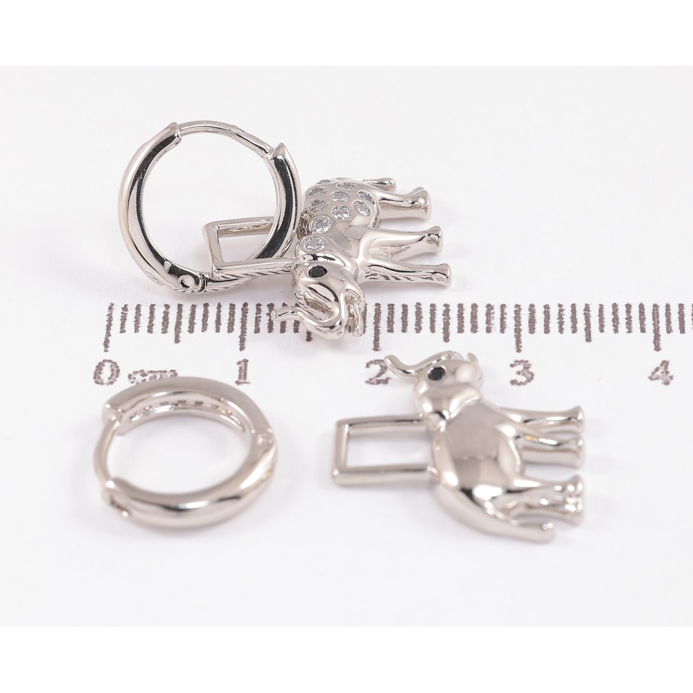 Сережки Xuping колір Родій підвіски на колечках "Асиметричні слони" 2 в 1