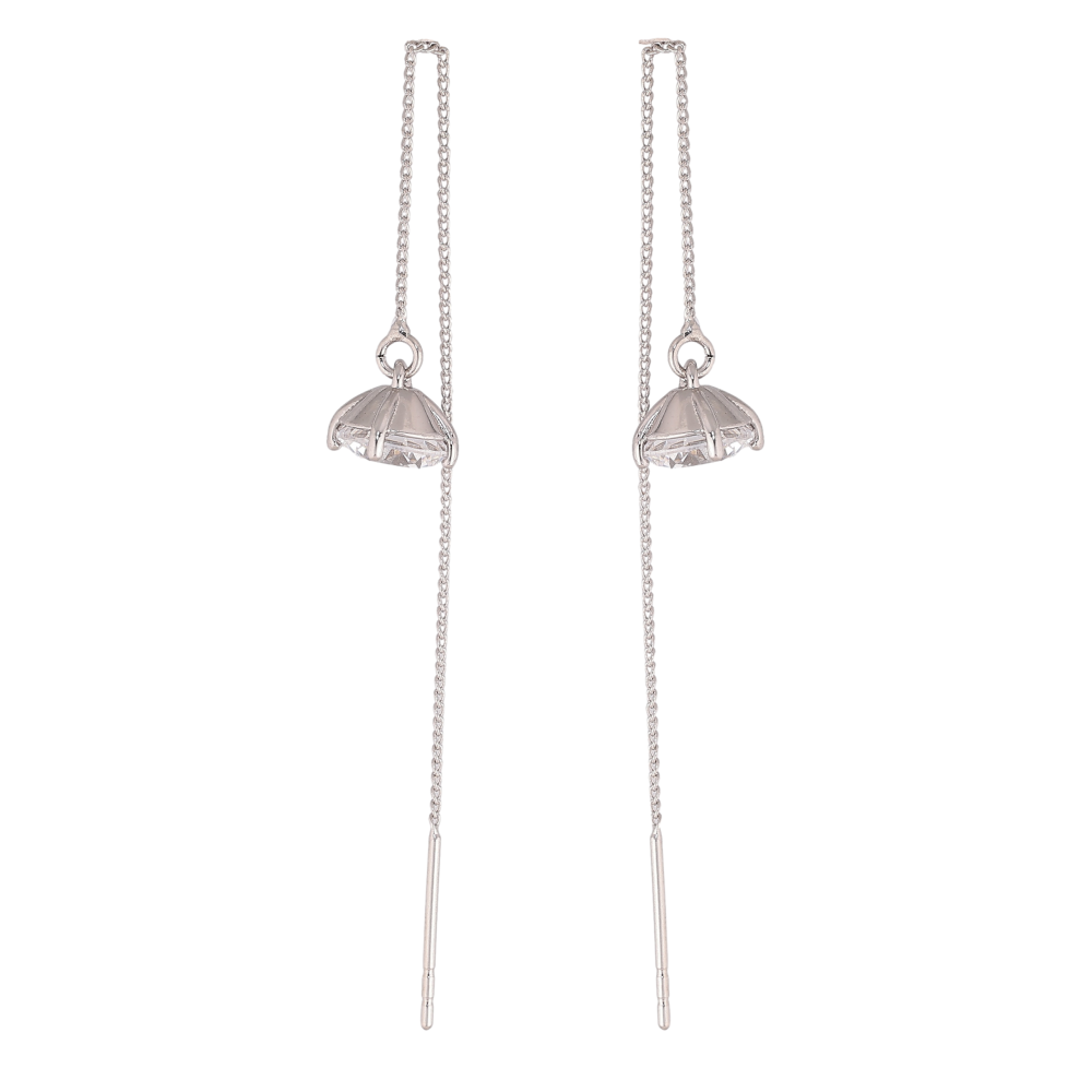 Сережки Xuping колір Родій протяжки "Кристали на ланцюжках" ø 7мм