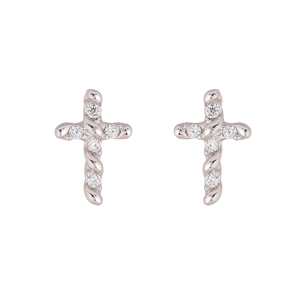 Сережки Xuping колір Родій пусети "Хрестики з кристалами"