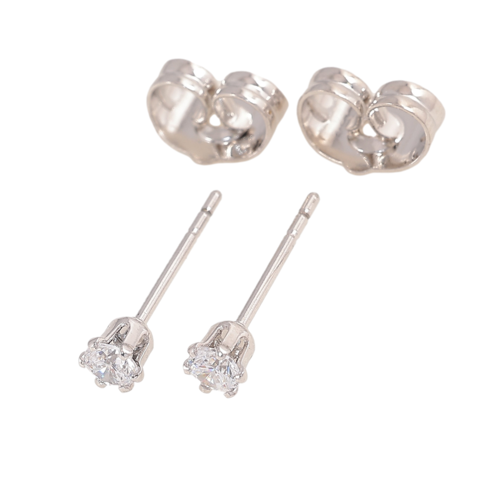 Сережки Xuping колір Родій пусети "Кристали в 6-ти крапановій оправі" ø 3мм