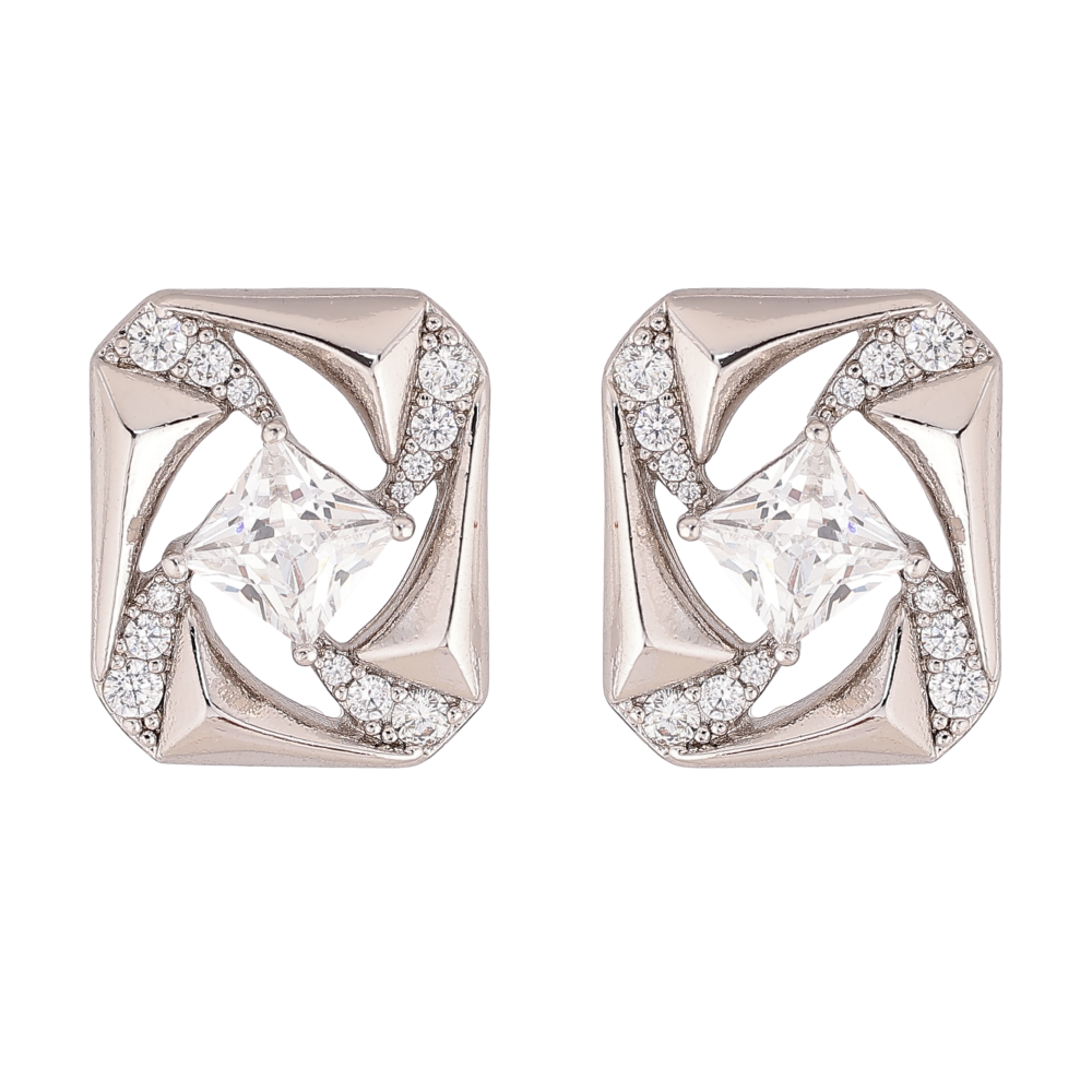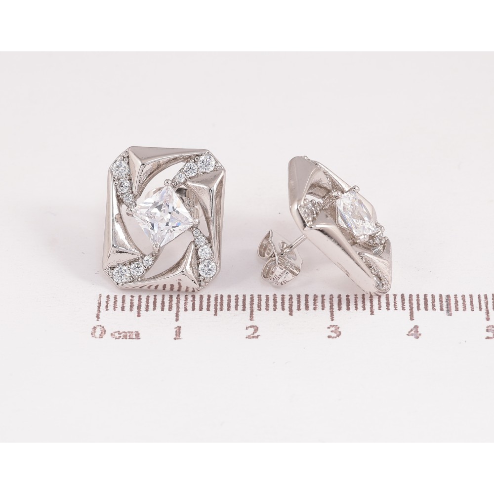 Сережки Xuping колір Родій пусети "Візерунок з кристалами"