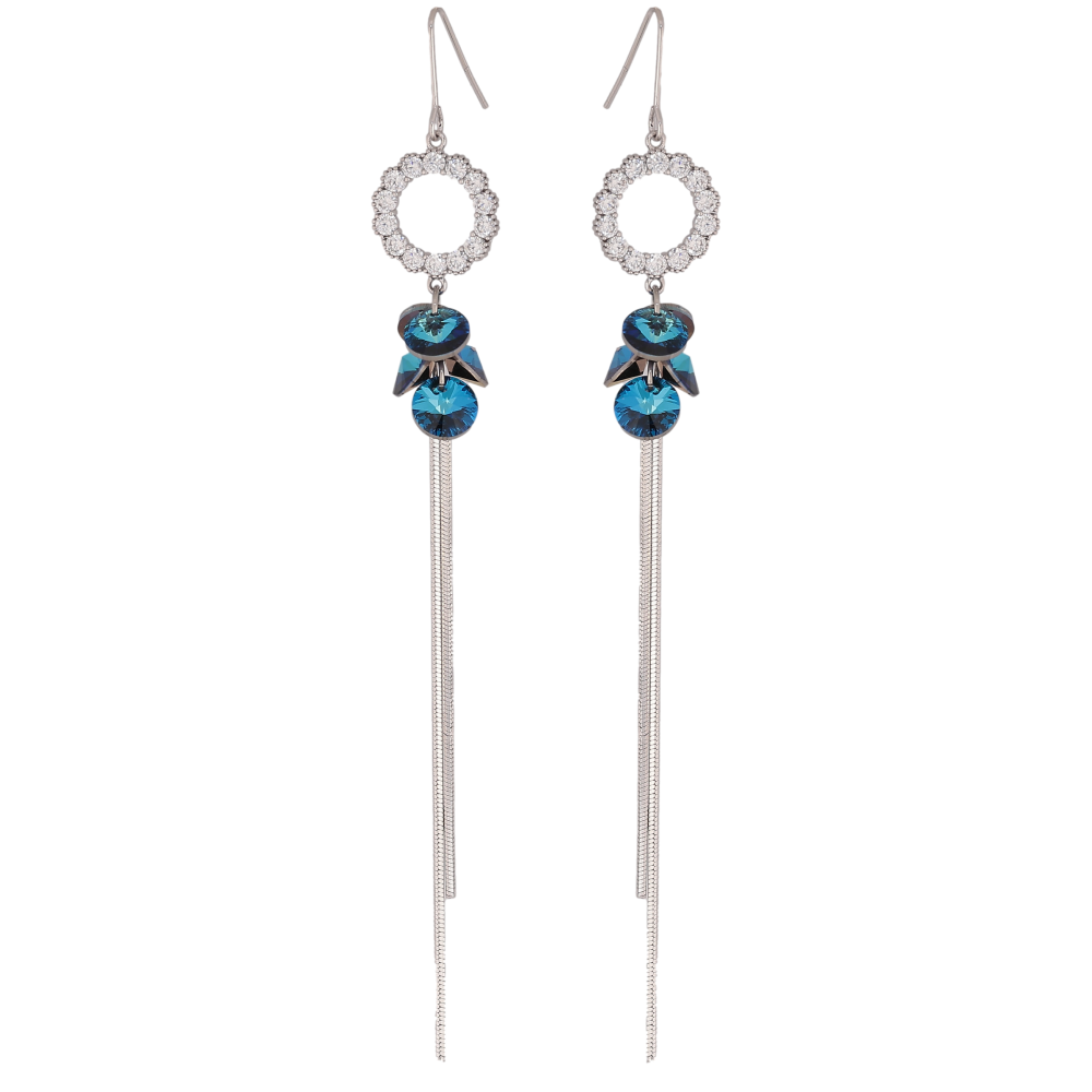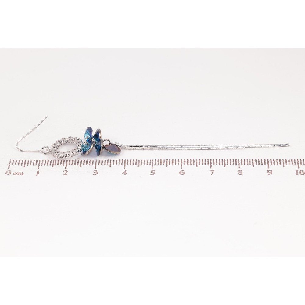 Сережки Xuping колір Родій з кристалами Swarovski французький замок "Кристали Metallic Blue на колечках з ланцюжками"