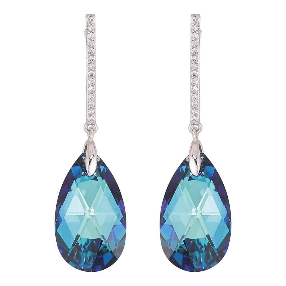 Сережки Xuping колір Родій з кристалами Swarovski пусети "Доріжка кристальною краплею Metallic Blue"