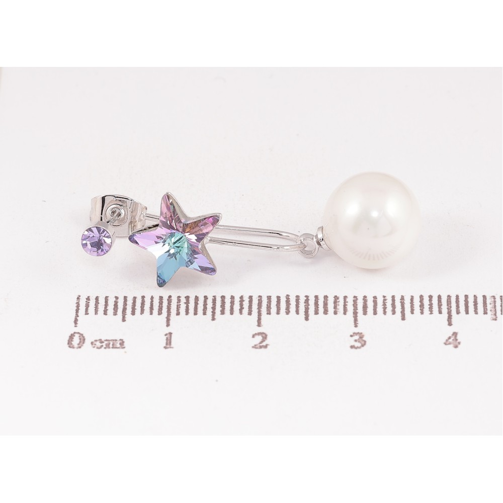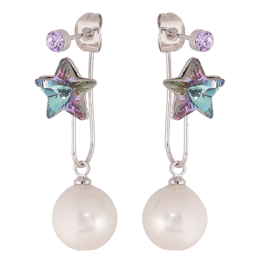 Сережки Xuping колір Родій з кристалами Swarovski пусети-джекети "Зірочки Paradise Shine з перлинами"
