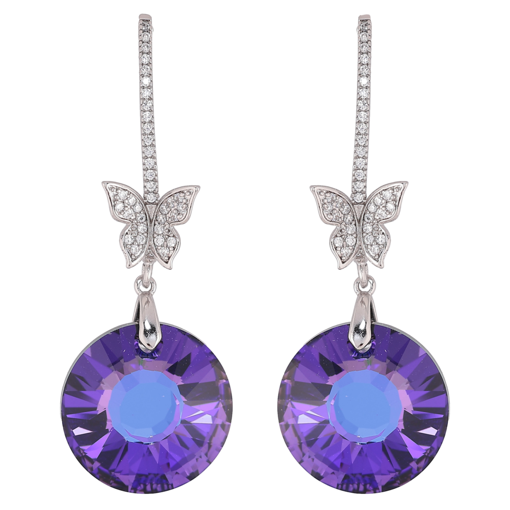 Сережки Xuping колір Родій з кристалами Swarovski пусети "Кристалеві дуги з метеликами та підвісками Heliotrope"