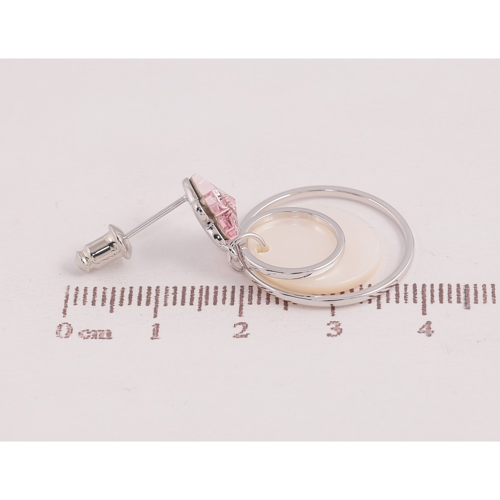 Сережки Xuping колір Родій з кристалами Swarovski пусети "Кристальний метелик Rose з перламутровою підвіскою"