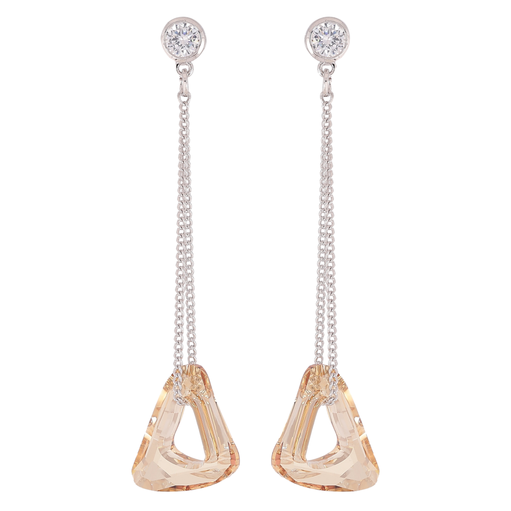 Сережки Xuping колір Родій з кристалами Swarovski пусети "Кристальний трикутник Topaz на ланцюжку"