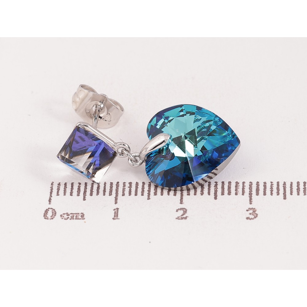 Сережки Xuping колір Родій з кристалами Swarovski пусети "Кубики з кришталевими серцями Capri Blue"