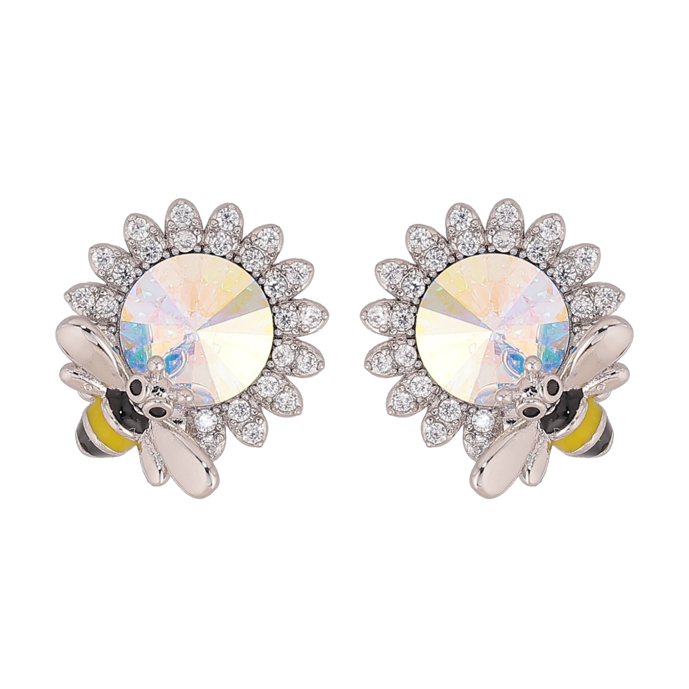 Сережки Xuping колір Родій з кристалами Swarovski пусети "Квіточки з кристалом АВ та бджолою"