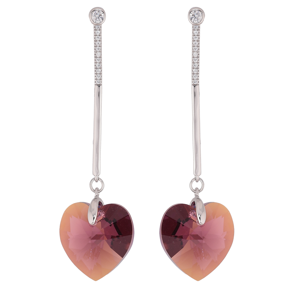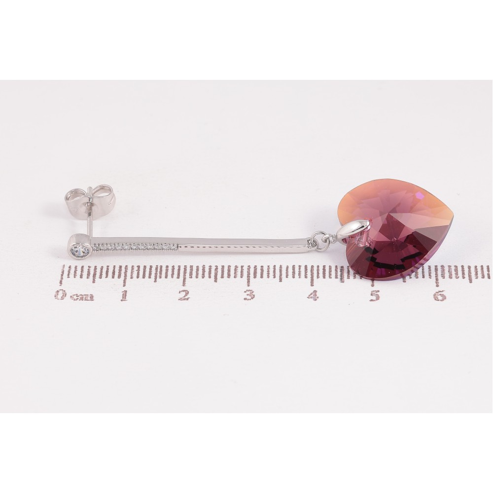Сережки Xuping колір Родій з кристалами Swarovski пусети "Підвіски кристалічні серця Burgundy"
