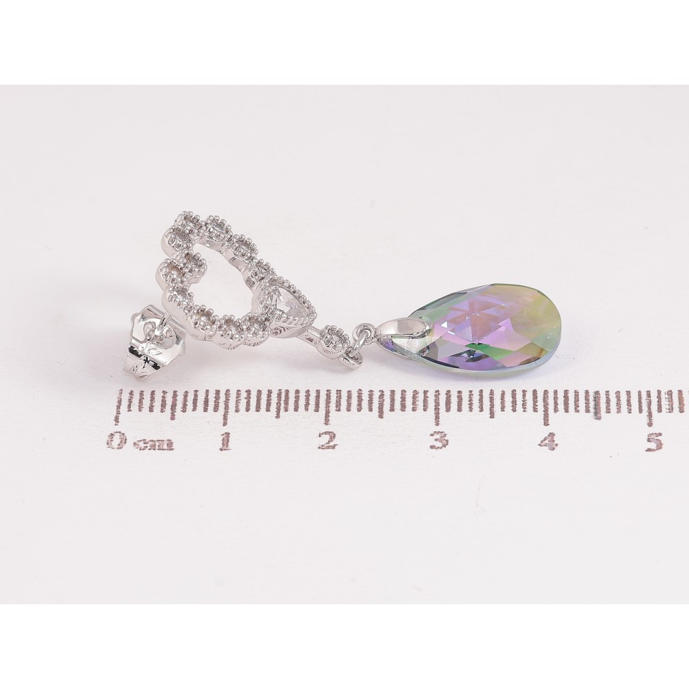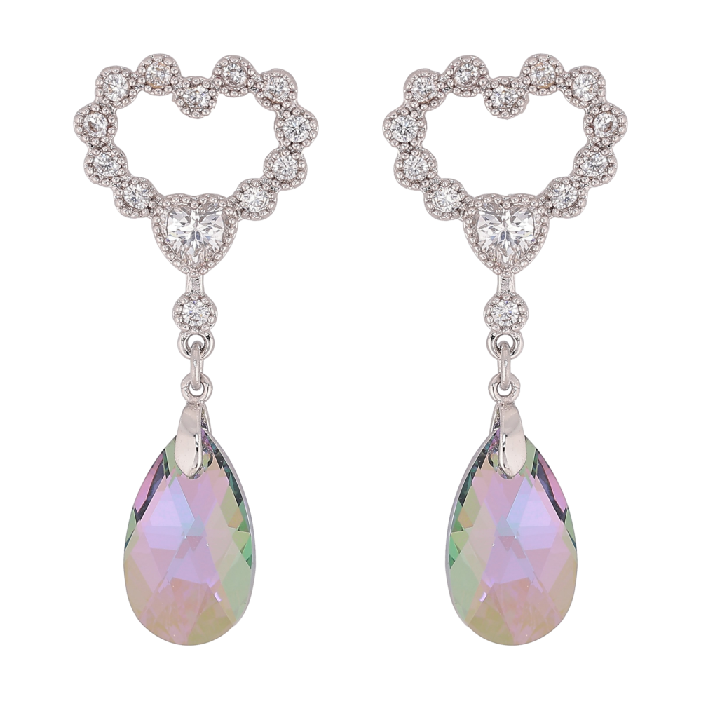 Сережки Xuping колір Родій з кристалами Swarovski пусети "Сердечка з підвіскою кристал Vitrail Light"