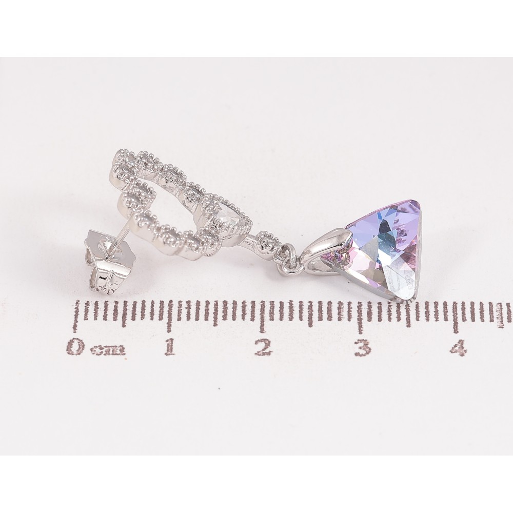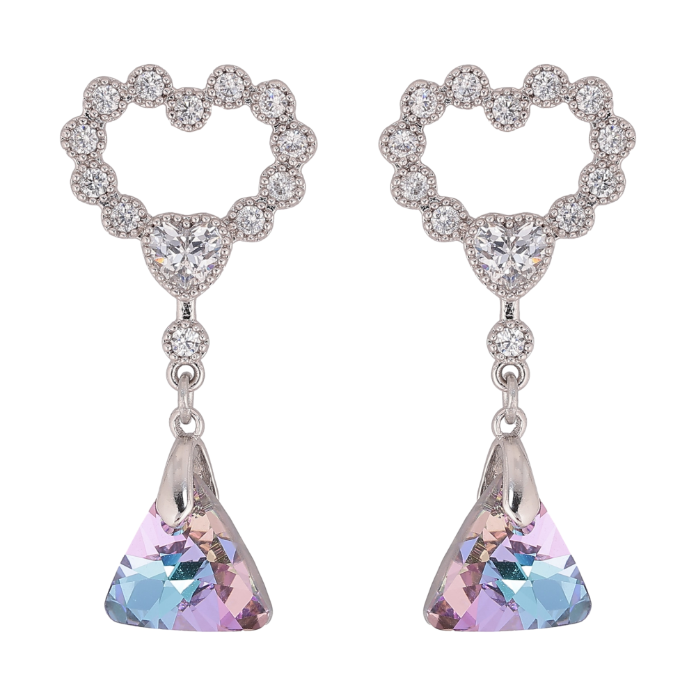 Сережки Xuping колір Родій з кристалами Swarovski пусети "Сердечки з підвіскою кристал Paradise Shine"