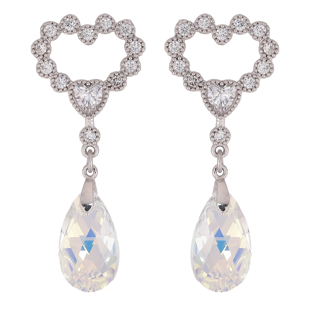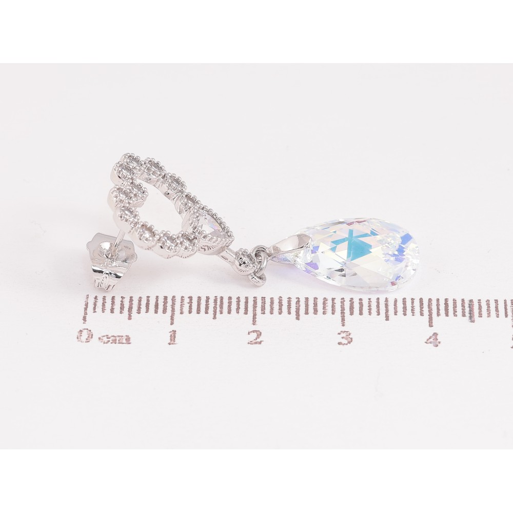 Сережки Xuping колір Родій з кристалами Swarovski пусети "Сердечки з підвіскою кристал Shimmer"