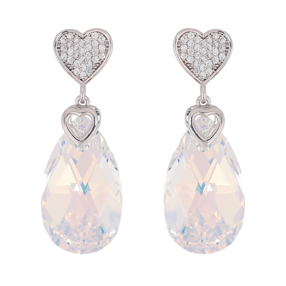 Сережки Xuping колір Родій з кристалами Swarovski пусети "Серце з кристальною підвіскою Shimmer"