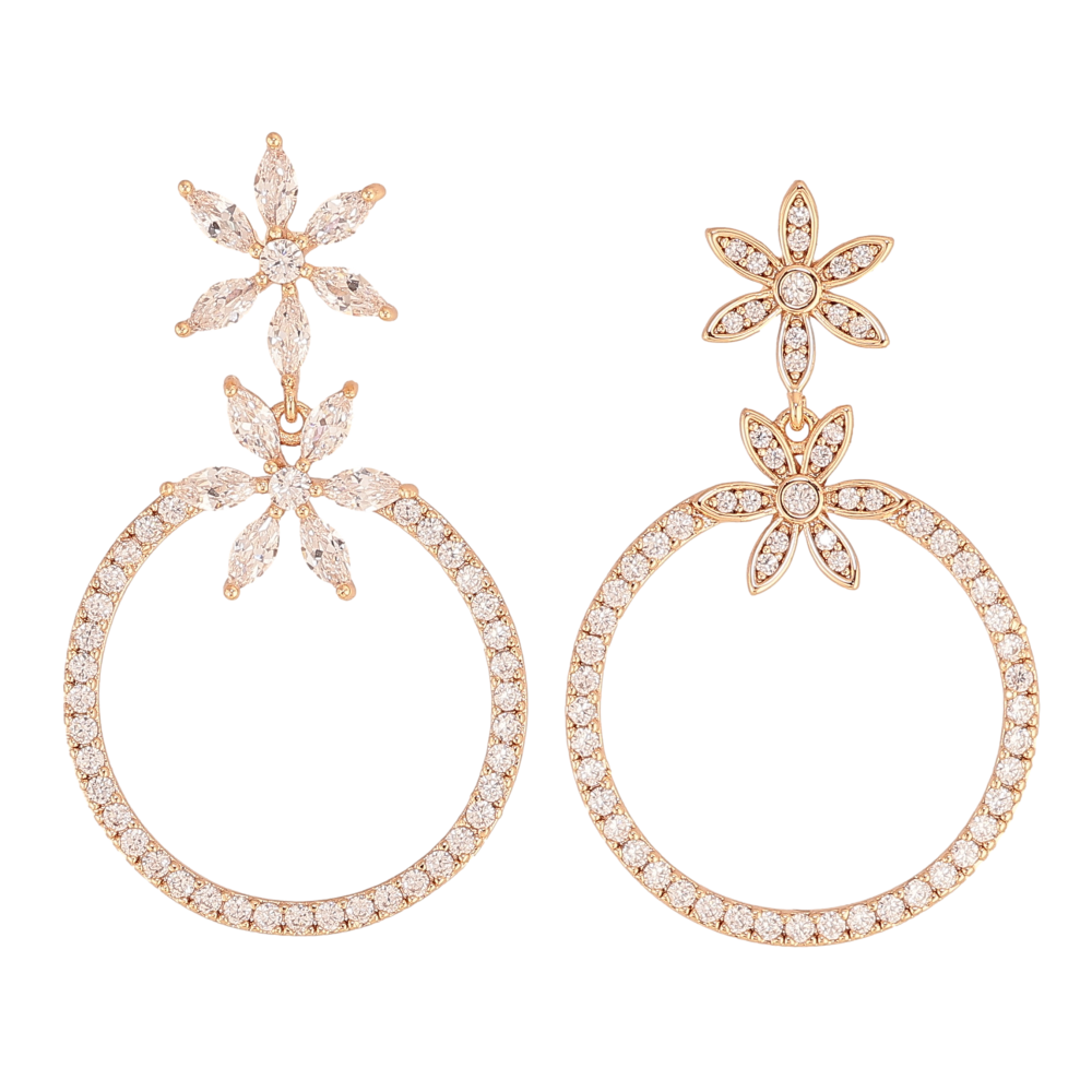 Сережки Xuping M&L колір 18K пусети "Асиметричні кристальні квіточки з кільцями"