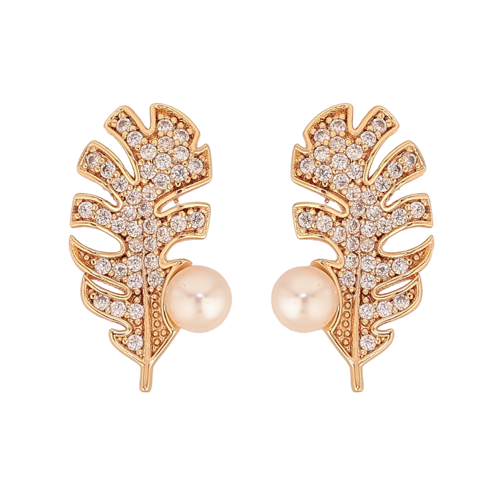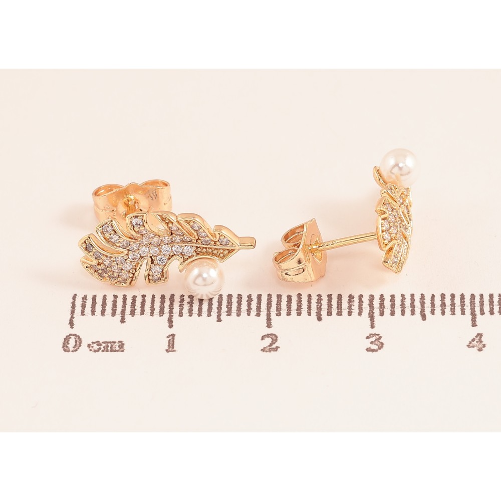 Сережки Xuping M&L колір 18K пусети "Листочки з перлами та кристалами"