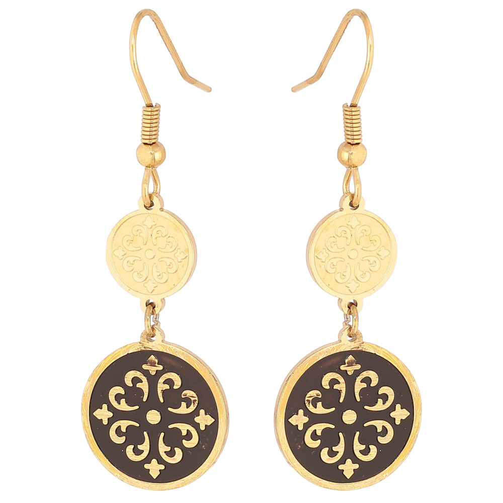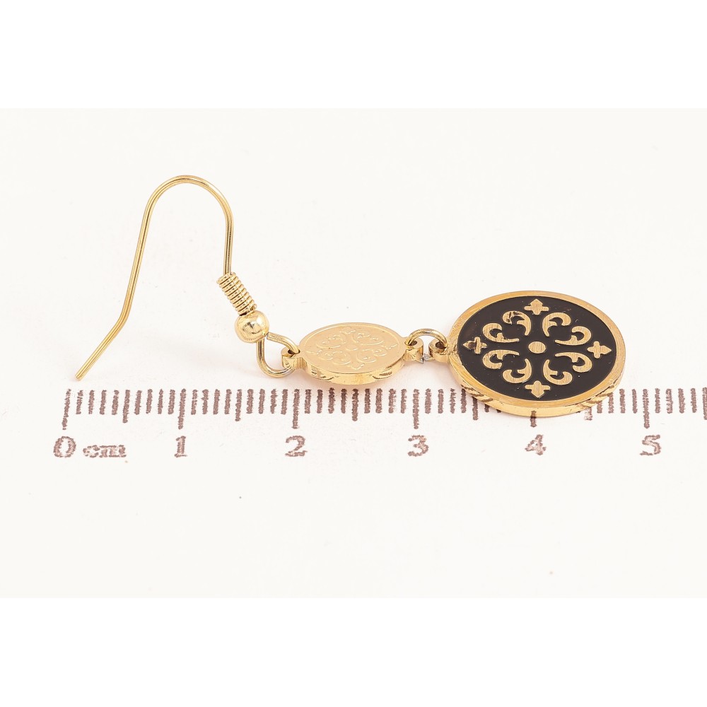 Сережки Xuping TTM Stainless Steel колір 14К французький замок "Декоративні підвіски із чорною емаллю"