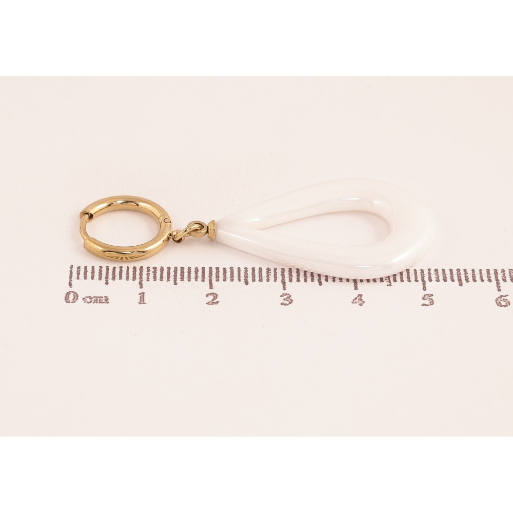 Сережки Xuping TTM Stainless Steel колір 14К підвіски на колечках "Білі керамічні крапельки"