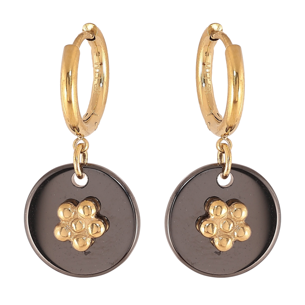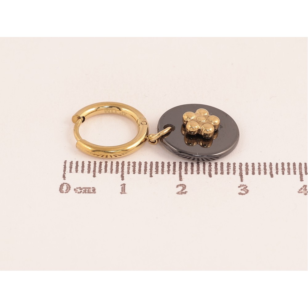 Сережки Xuping TTM Stainless Steel колір 14К підвіски на колечках "Чорні керамічні підвіски з квіточками"