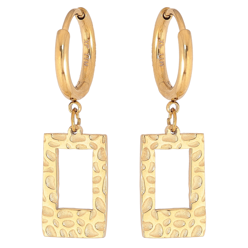 Сережки Xuping TTM Stainless Steel колір 14К підвіски на колечках декоративні прямокутники