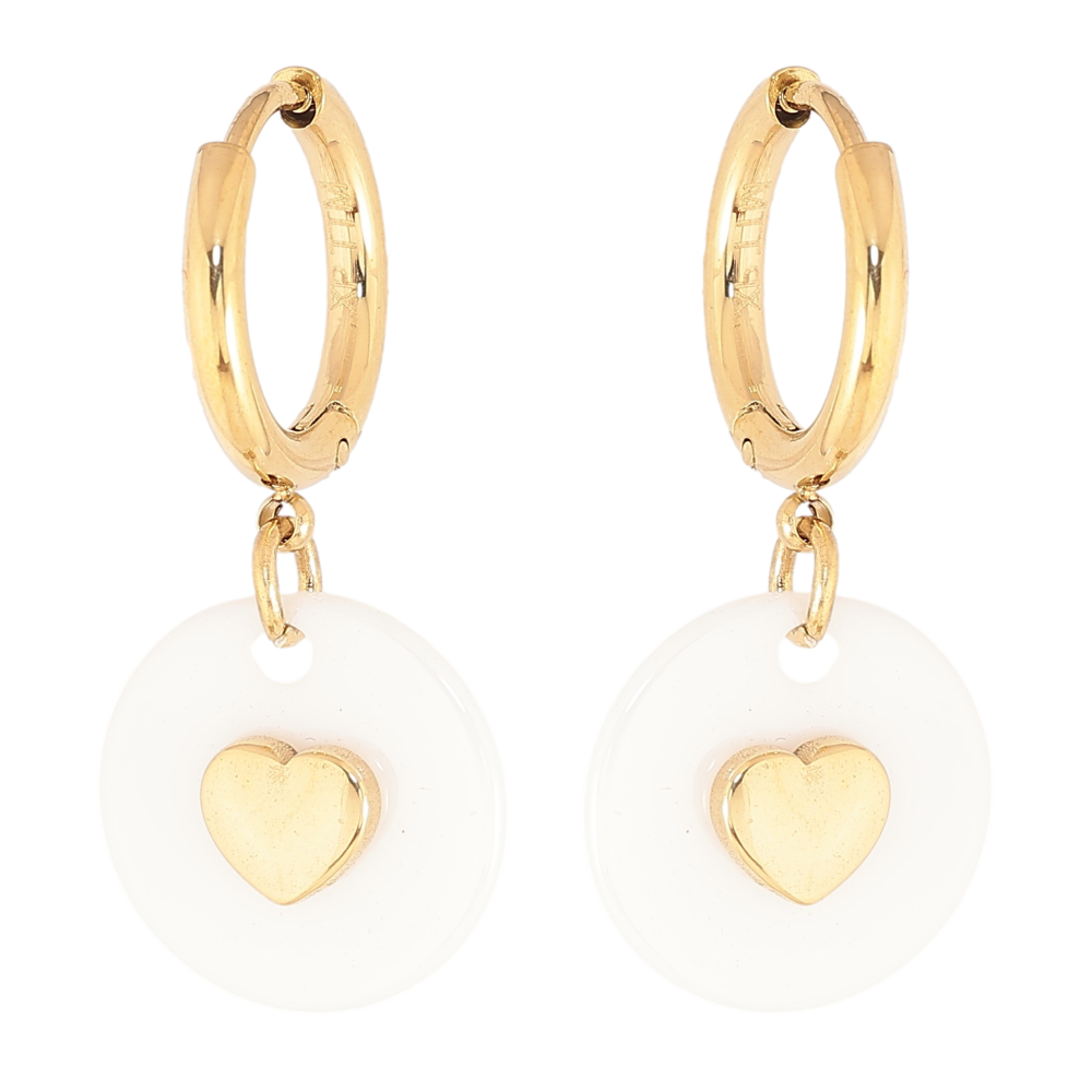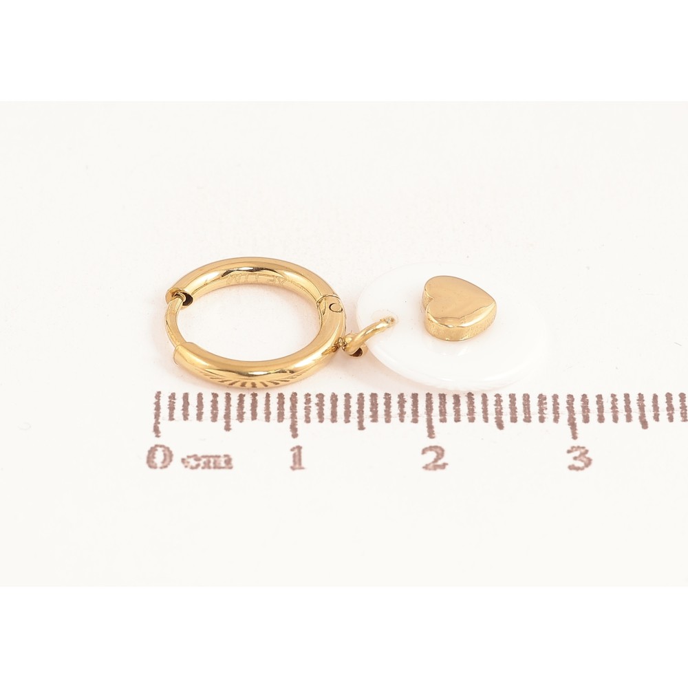 Сережки Xuping TTM Stainless Steel колір 14К підвіски на колечках "Кільця білої кераміки з візерунком серця"