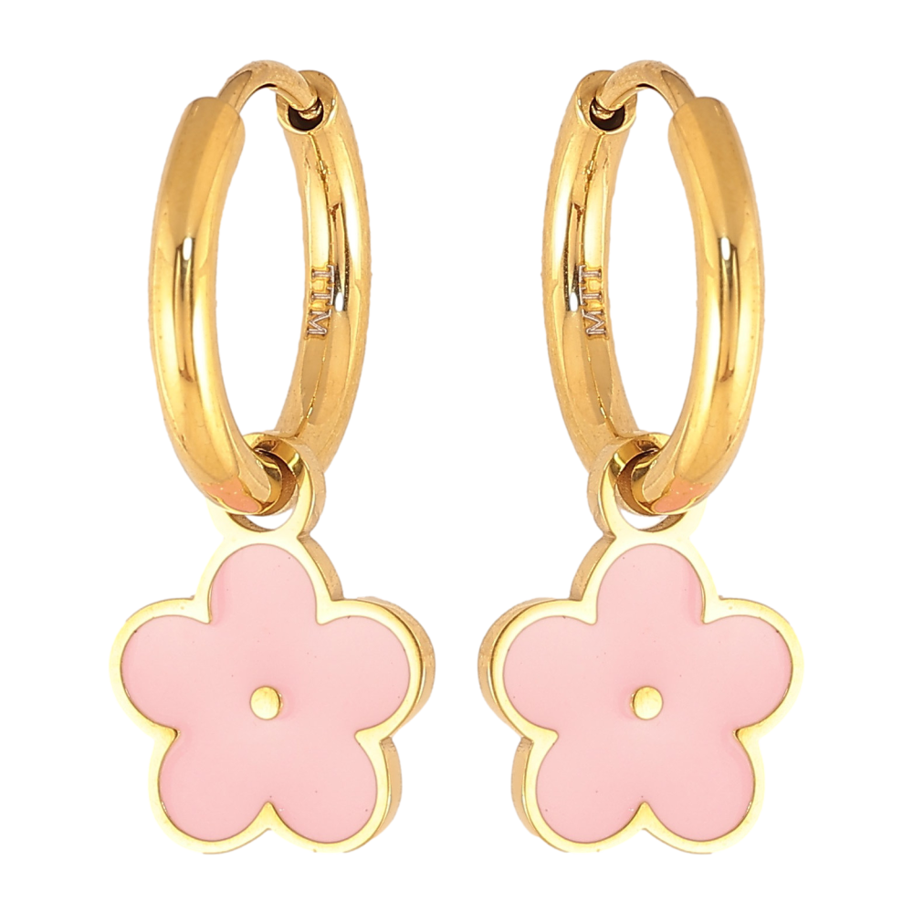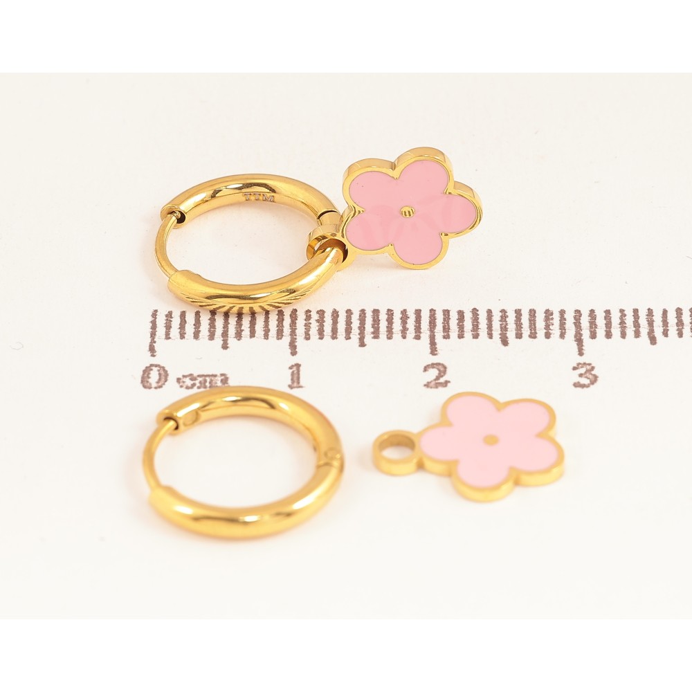 Сережки Xuping TTM Stainless Steel колір 14К підвіски на колечках "Квіточки з рожевою емаллю" 2 в 1