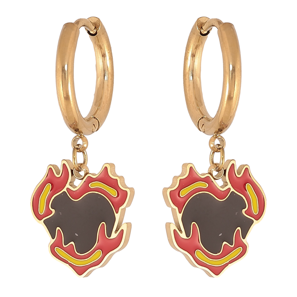 Сережки Xuping TTM Stainless Steel колір 14К підвіски на колечках "Полум'яне серце"
