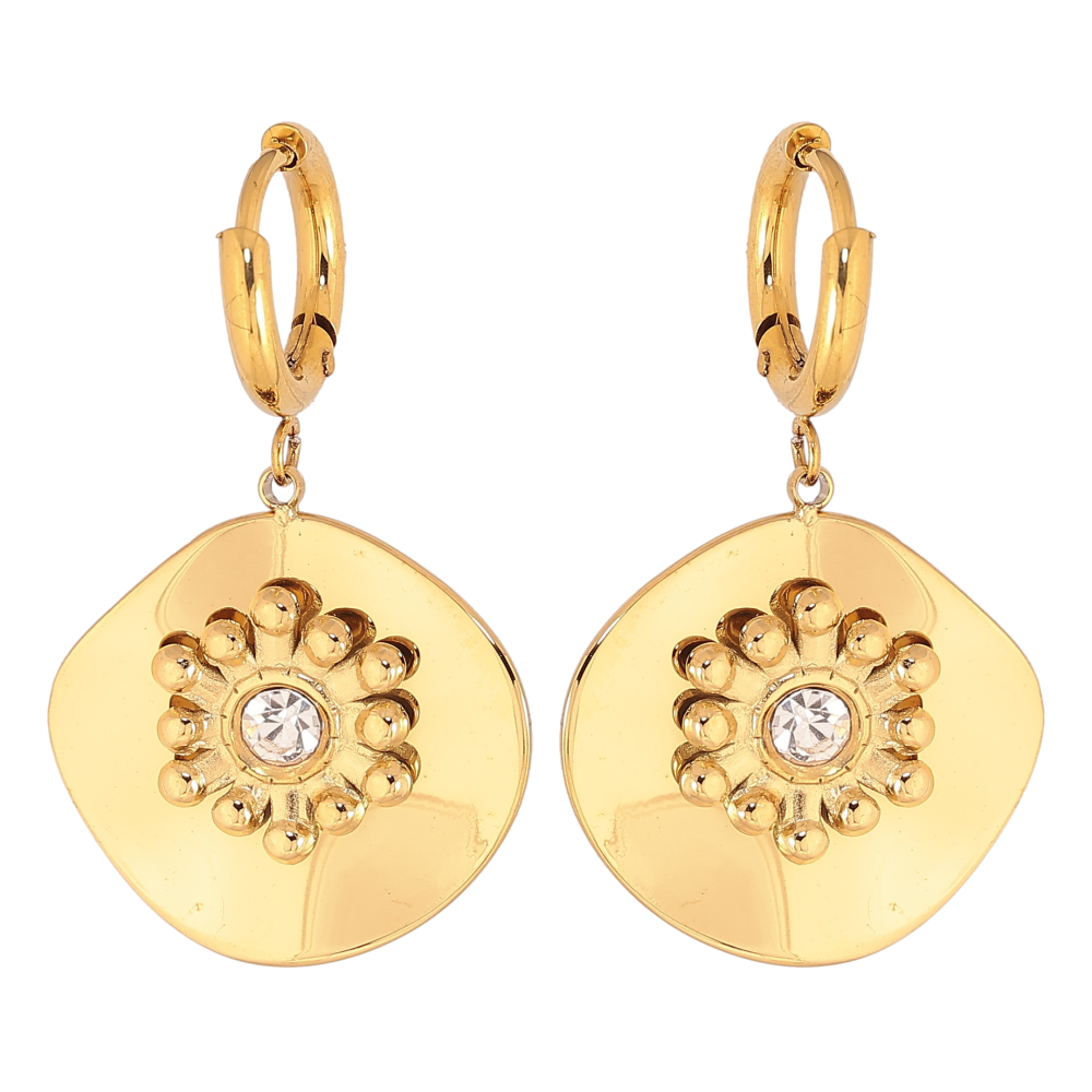 Сережки Xuping TTM Stainless Steel колір 14К підвіски на колечках "Візерунок з кристалами"