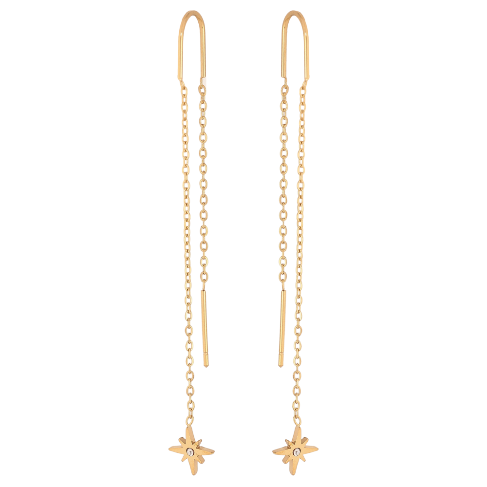 Сережки Xuping TTM Stainless Steel колір 14К протяжки "Зірки на ланцюжку"
