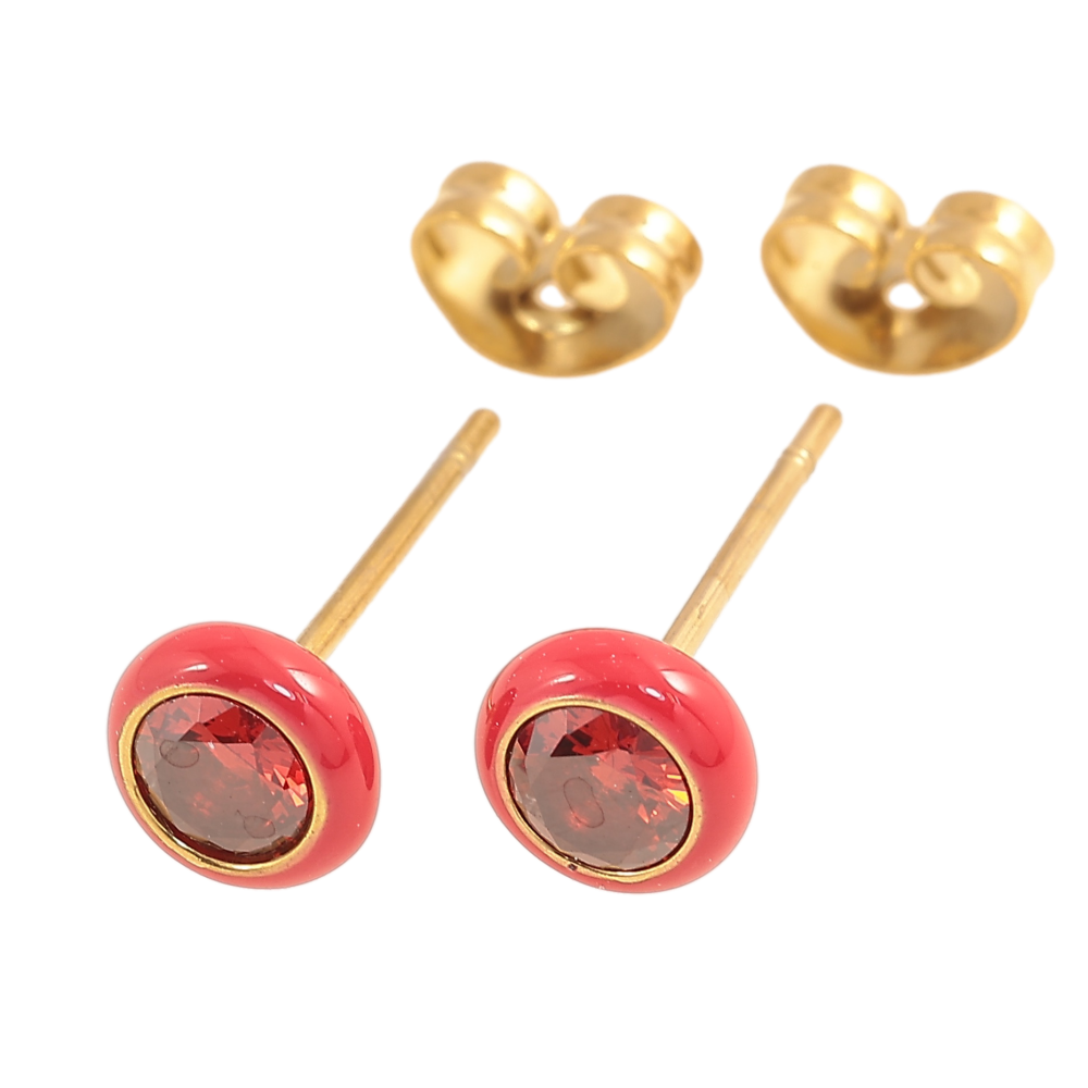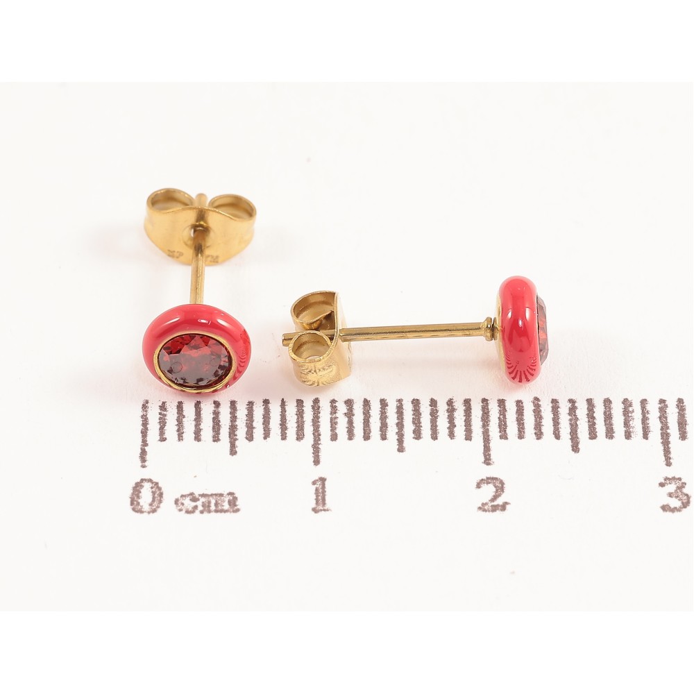 Сережки Xuping TTM Stainless Steel колір 14К пусети червоні кристали з емаллю ø 6мм