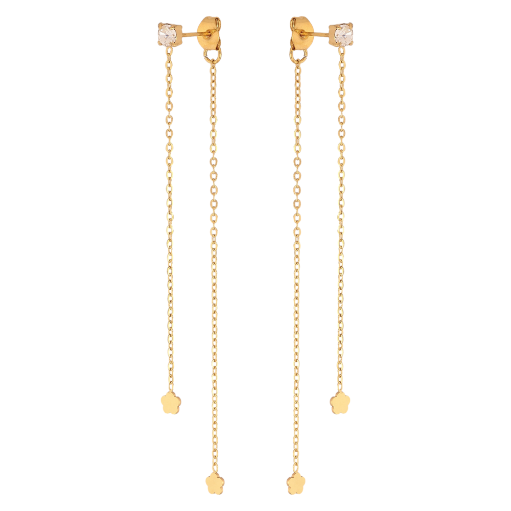 Сережки Xuping TTM Stainless Steel колір 14К пусети-джекети "Квіточки на ланцюжках"