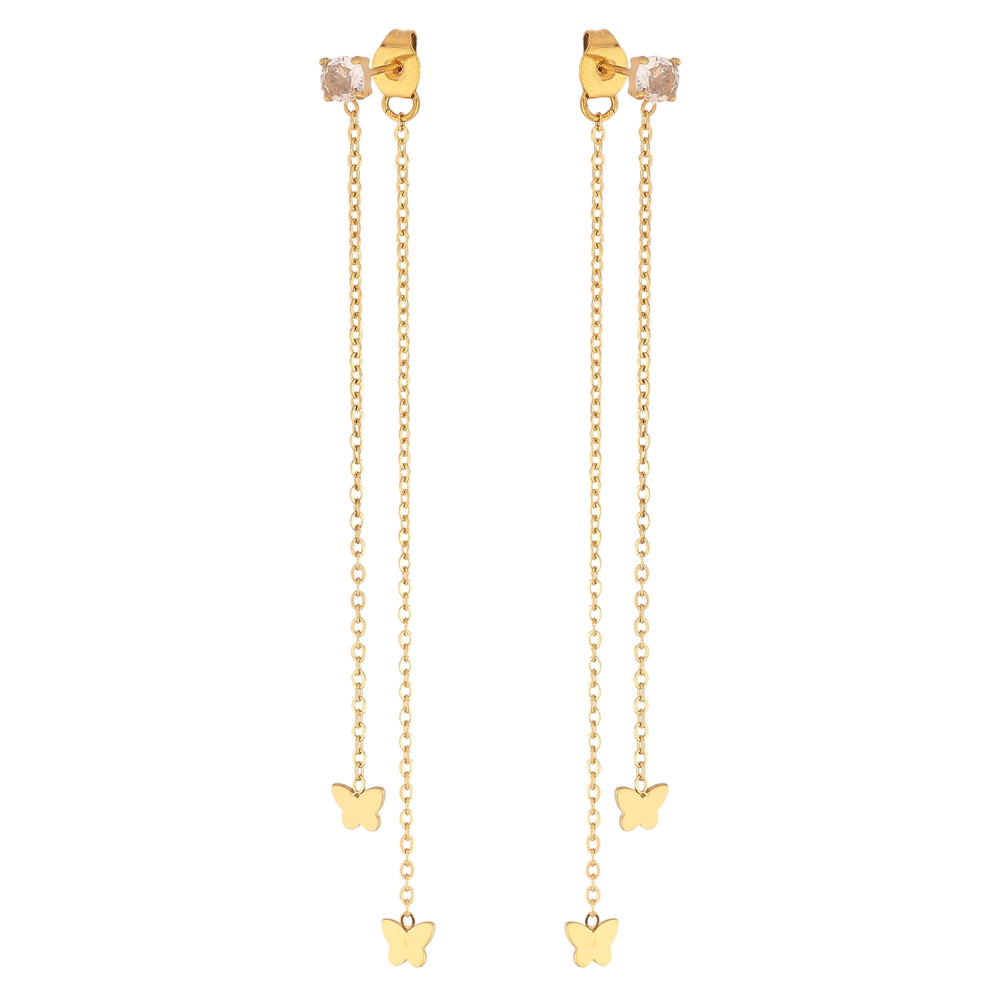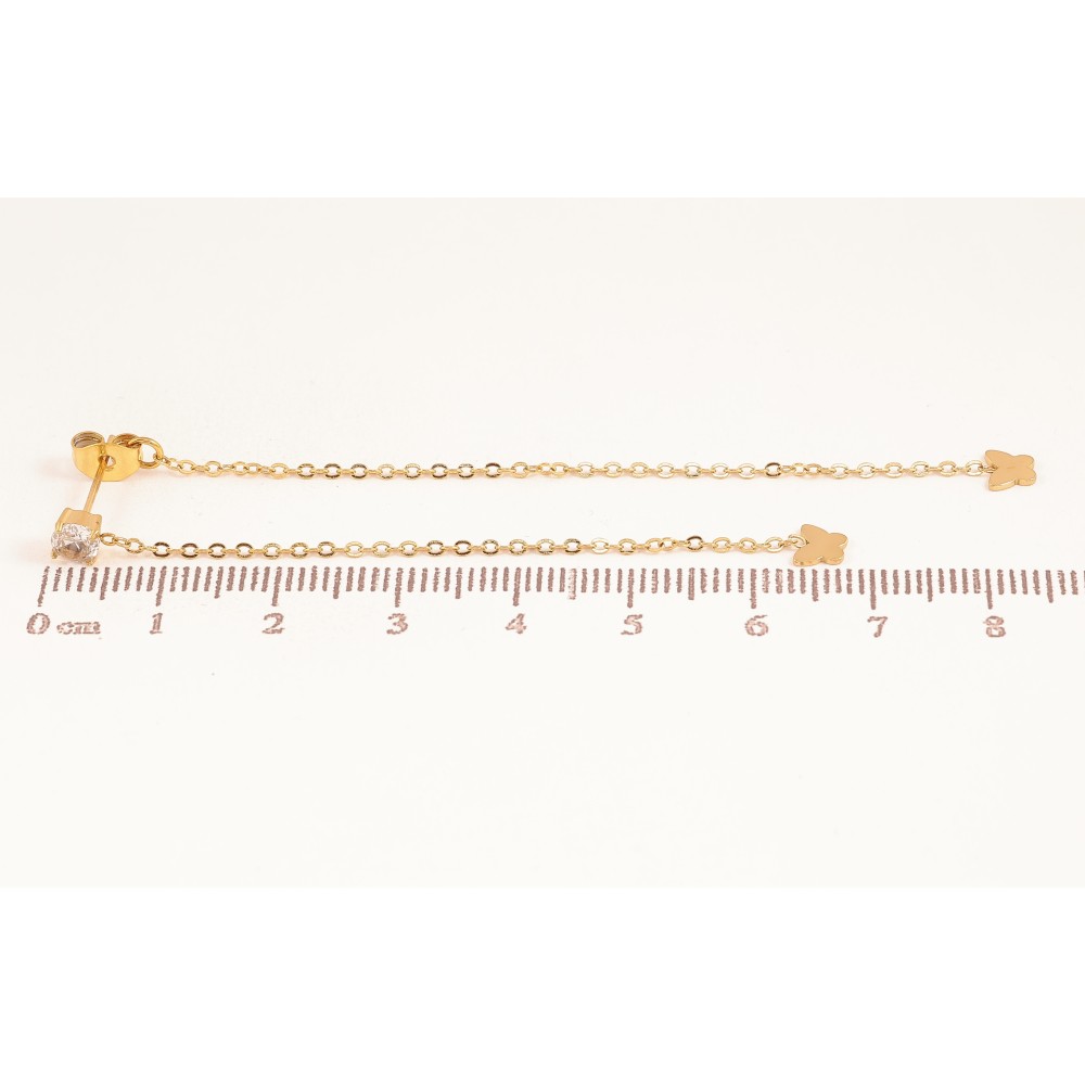 Сережки Xuping TTM Stainless Steel колір 14К пусети-джекети "Метелики на ланцюжках"