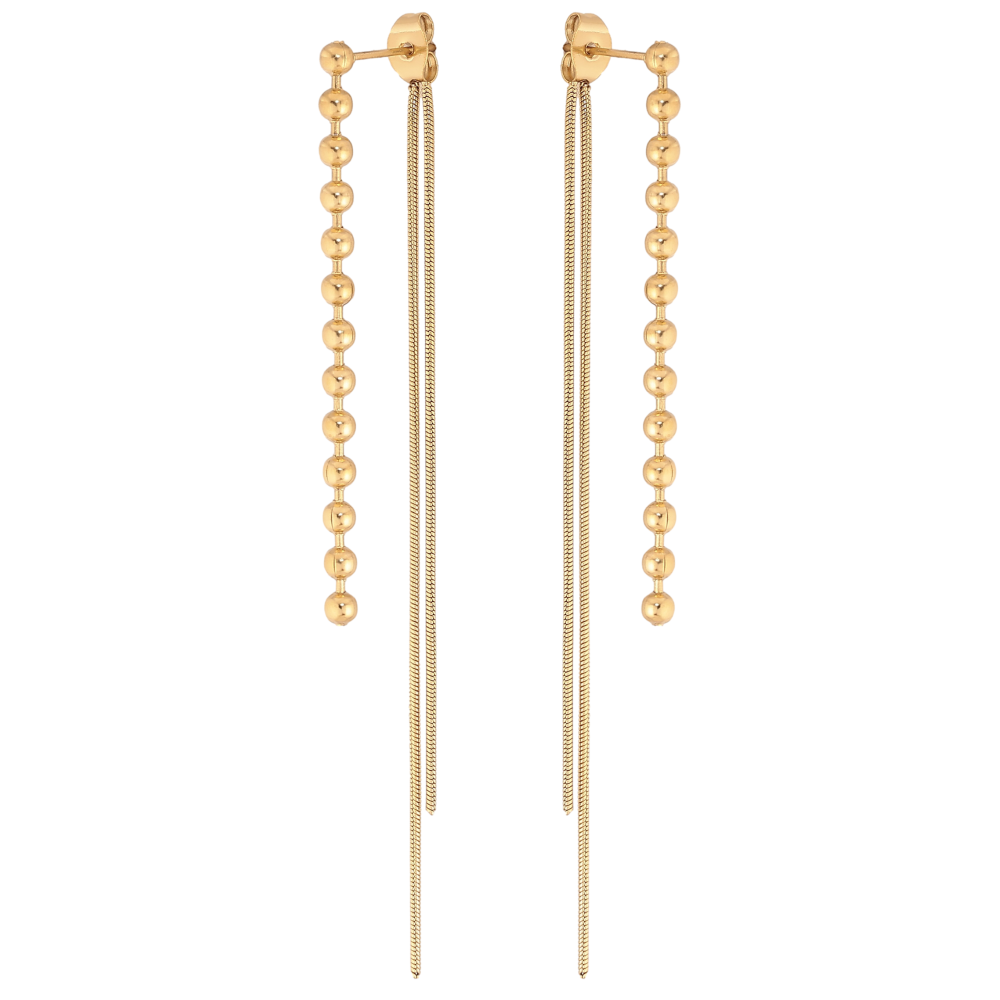 Сережки Xuping TTM Stainless Steel колір 14К пусети-джекети "Підвіски з ланцюжками"
