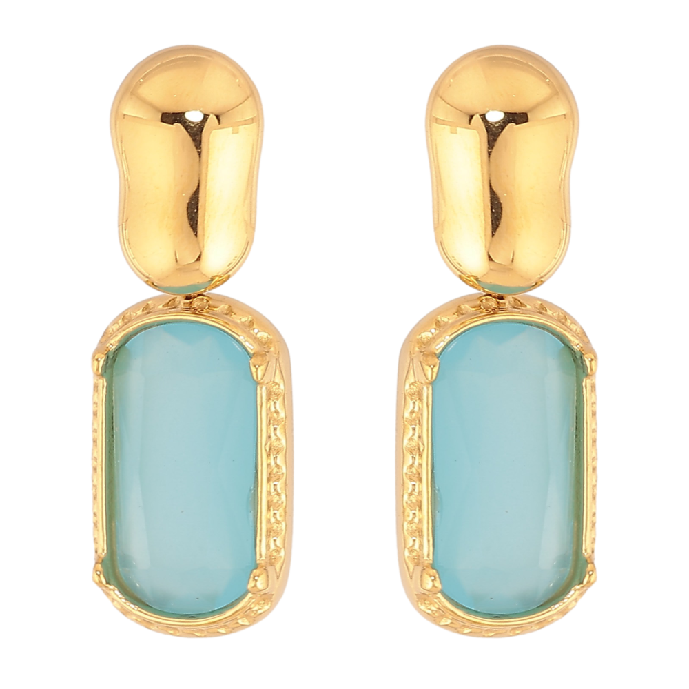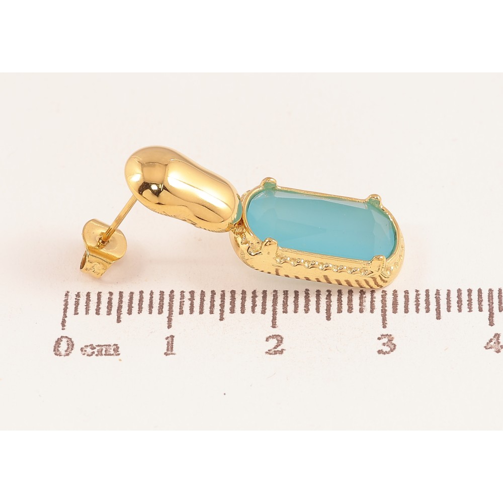 Сережки Xuping TTM Stainless Steel колір 14К пусети "Візерунок з блакитними кристалами"